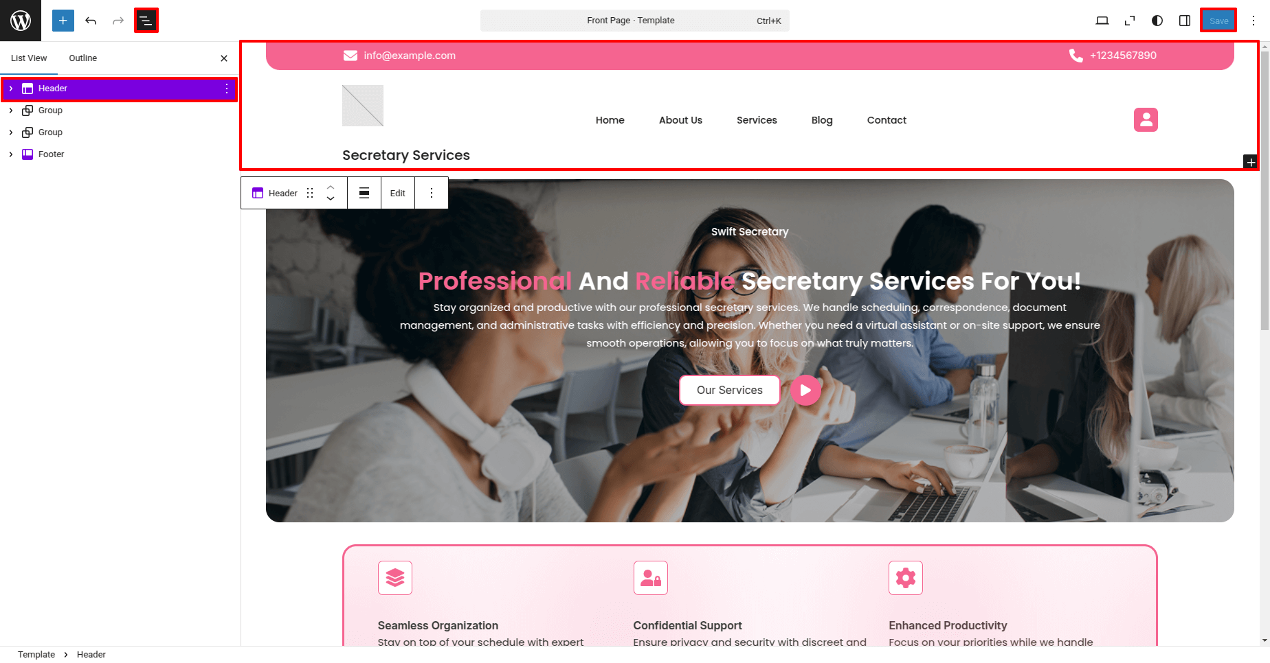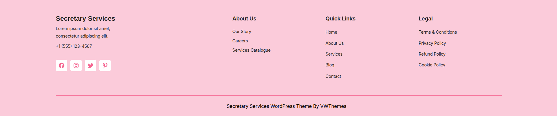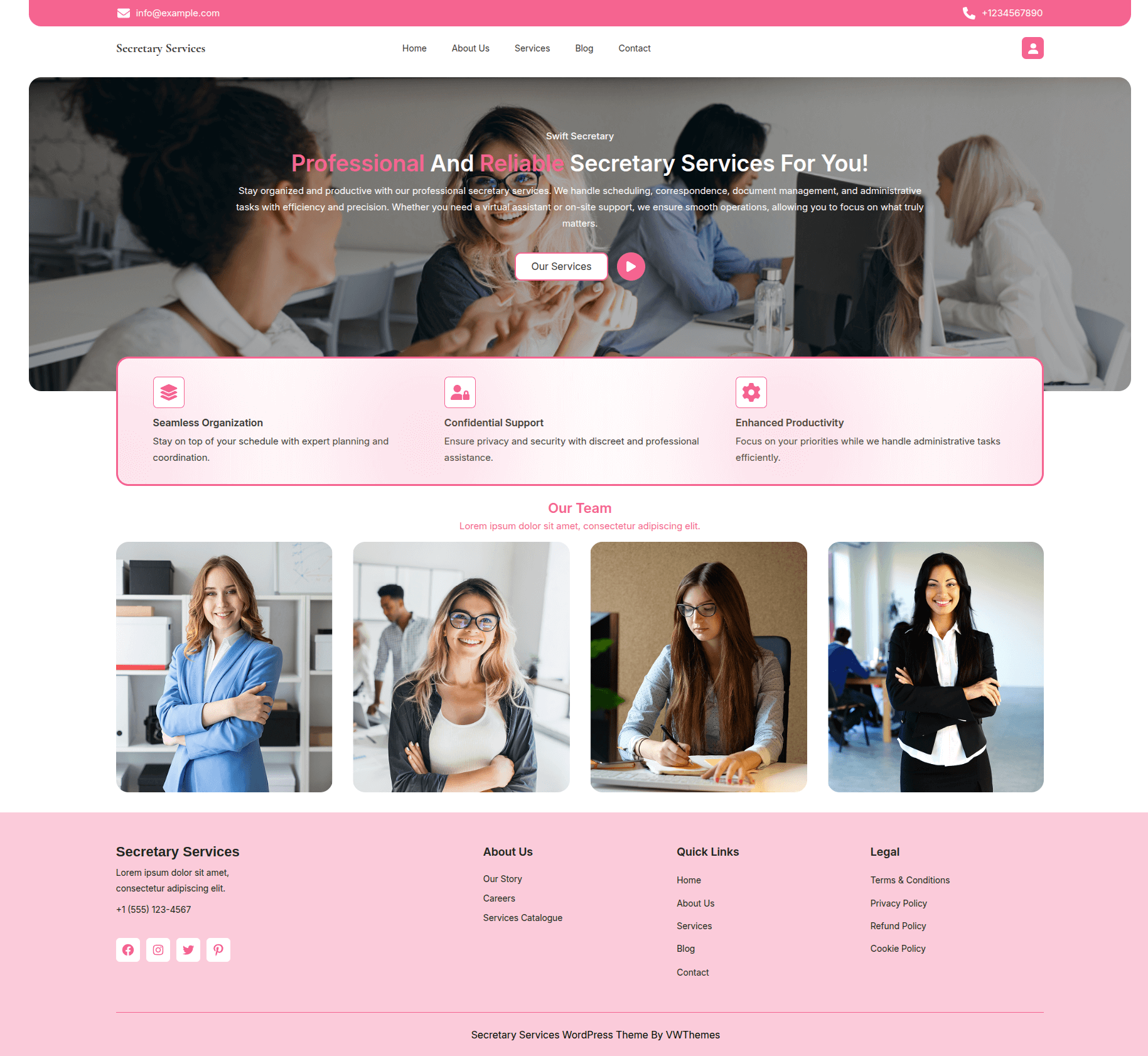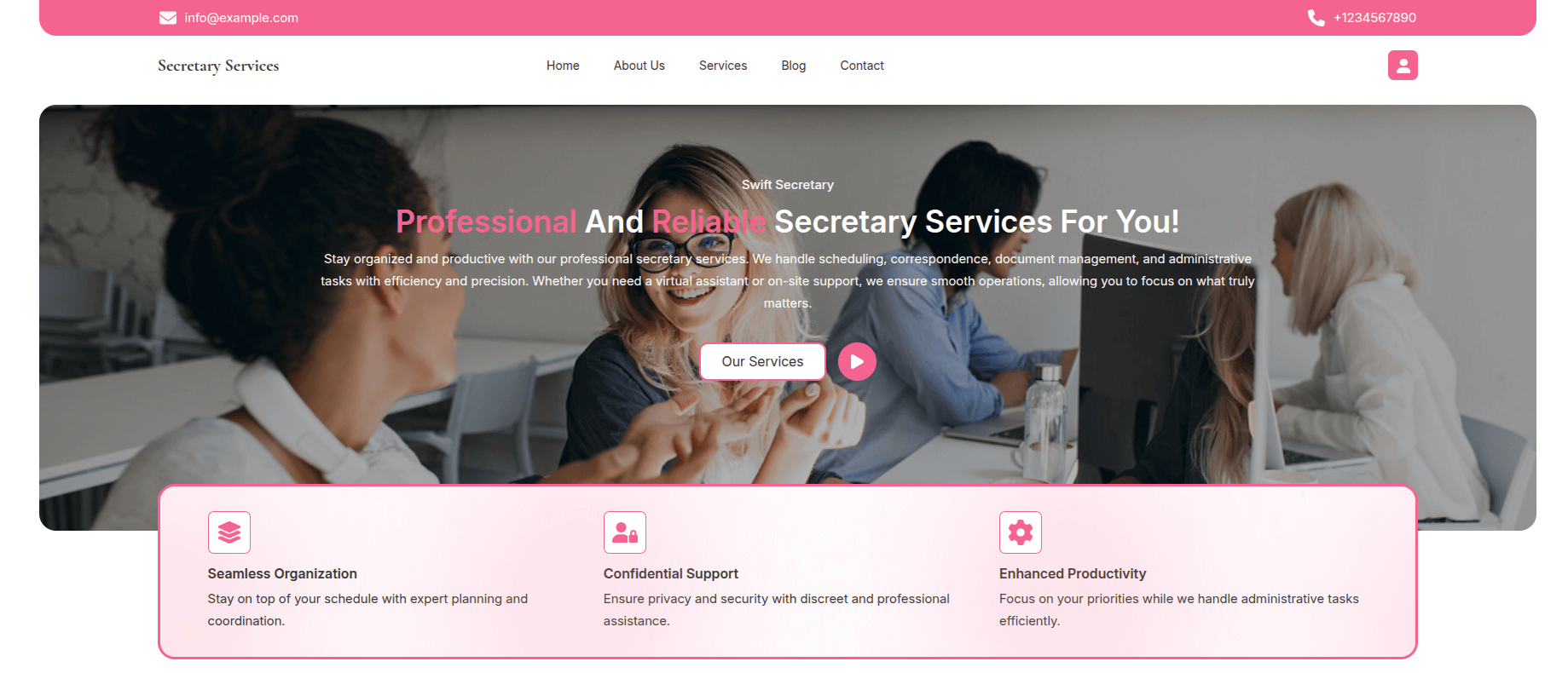 - "secretary-services.zip" -this folder contains all the necessary files for the theme.