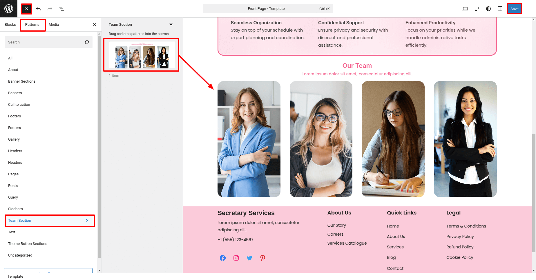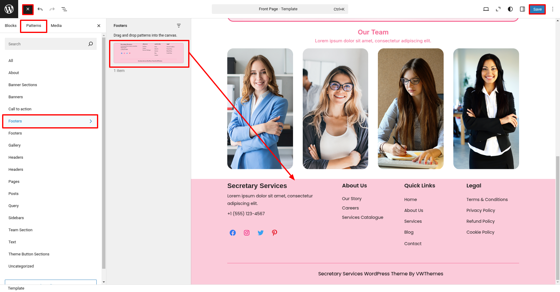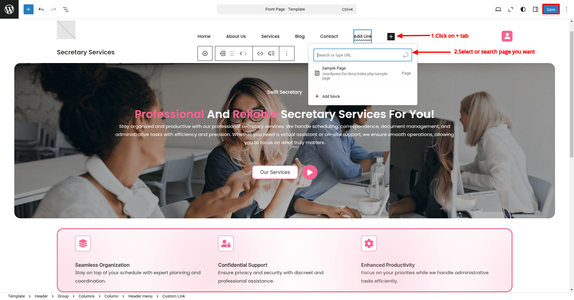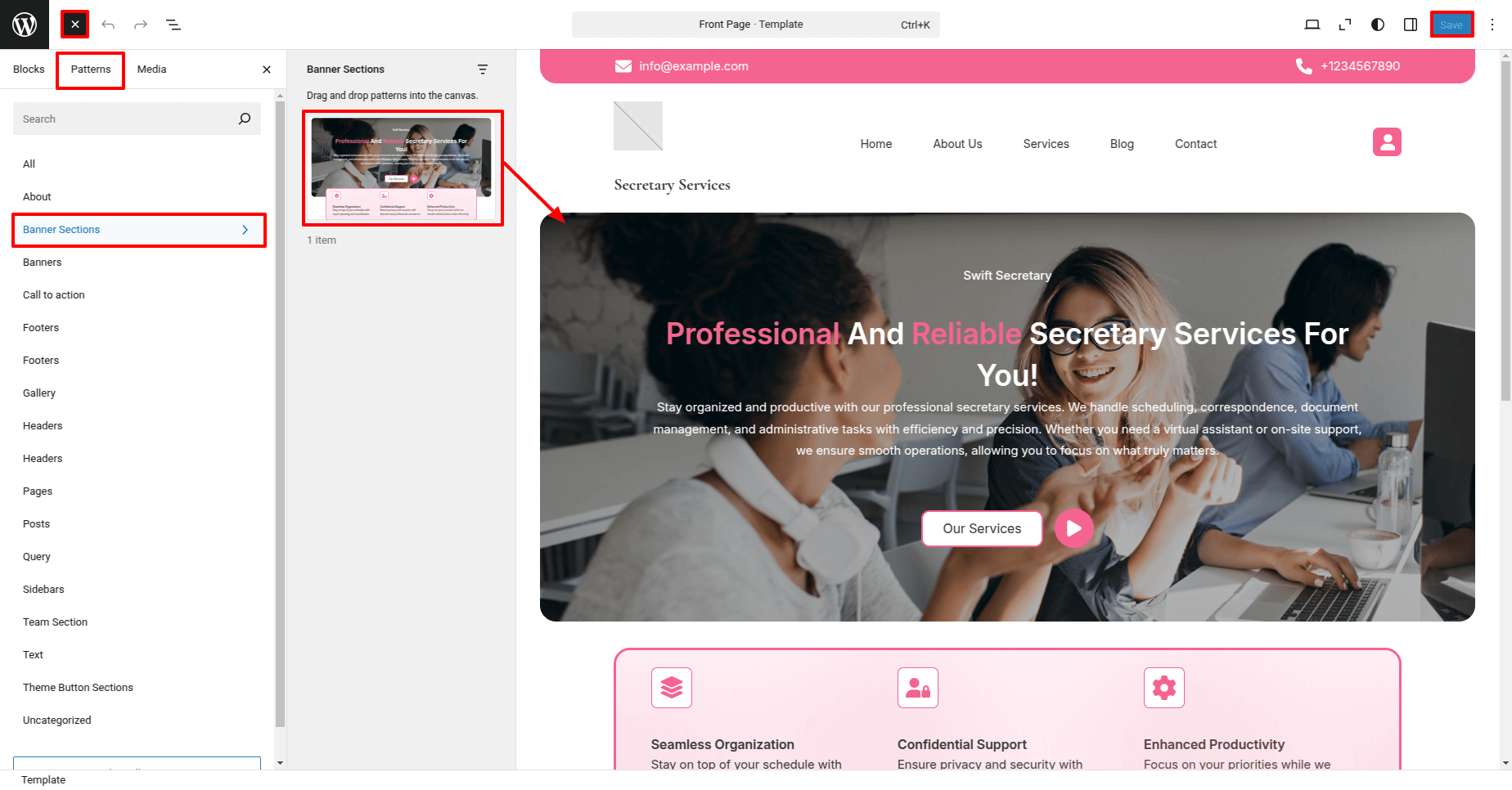 - "secretary-services.zip" -this folder contains all the necessary files for the theme.