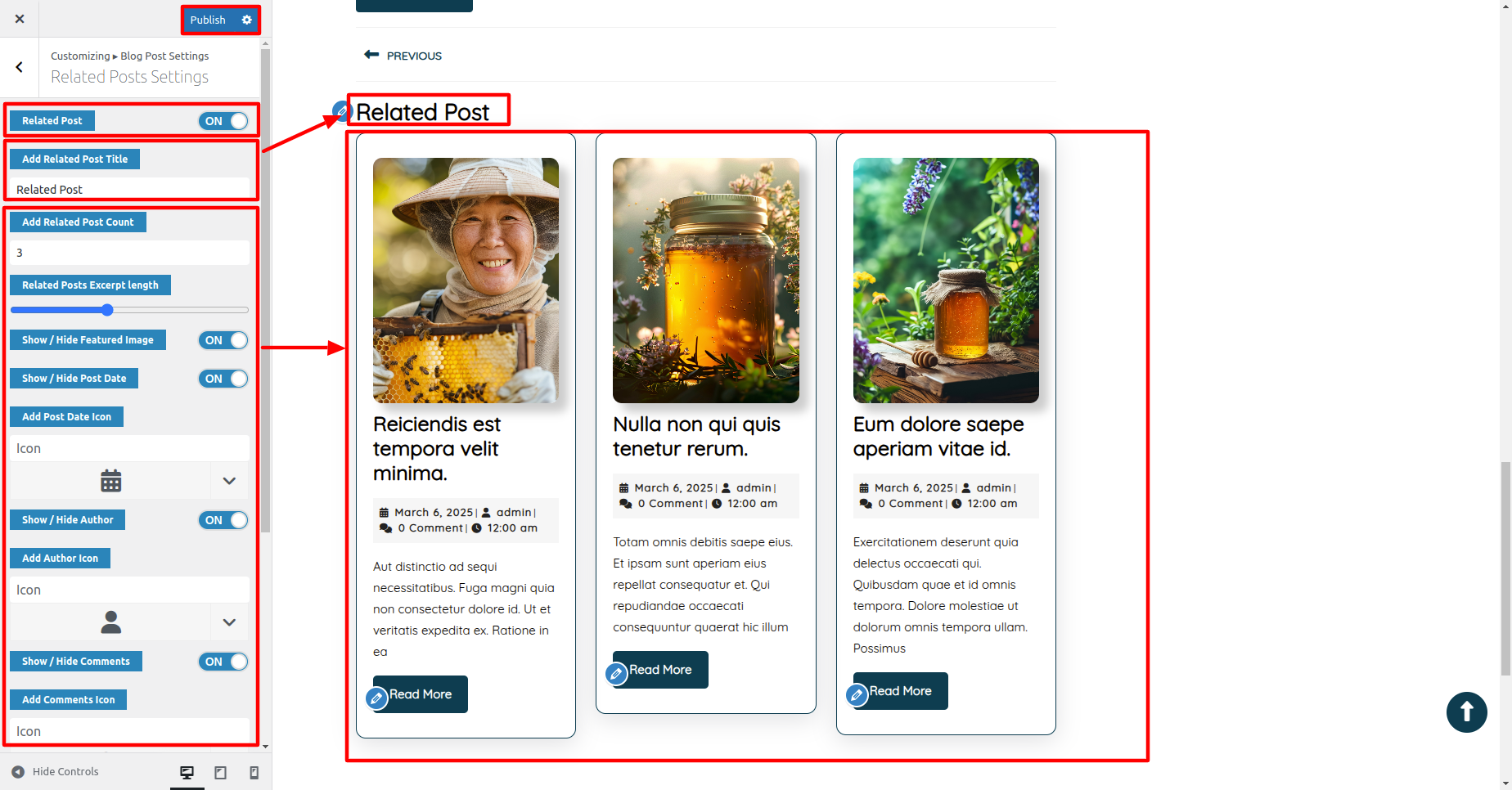 Go To Dashboard >> Appearance >> Customize >> Blog Post Setting >> Related Posts Setting