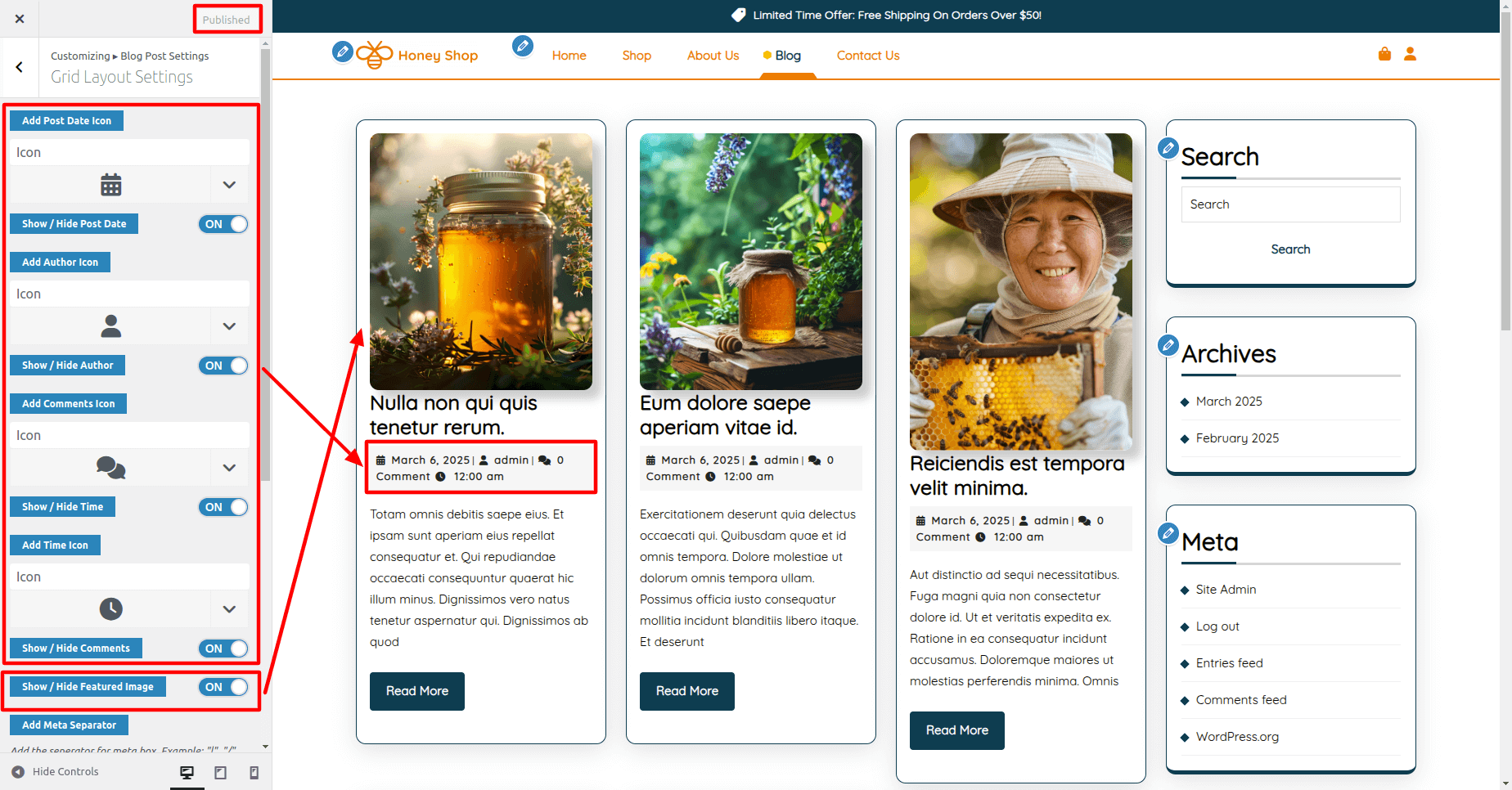 Go To Dashboard >> Appearance >> Customize >> Blog Post Setting >> Post Setting