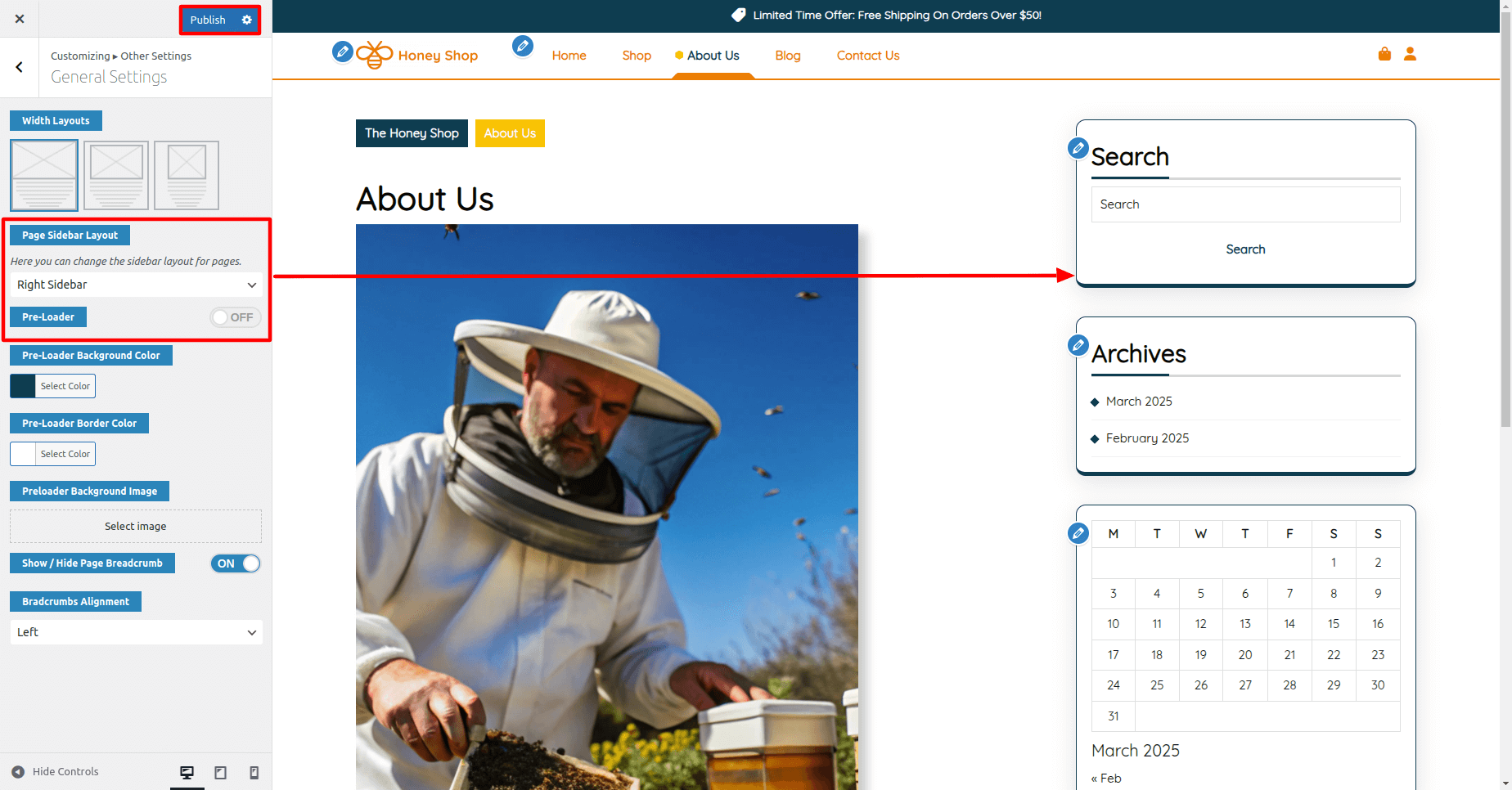 Go To Dashboard >> Appearance >> Customize >> Other Setting >> General Setting