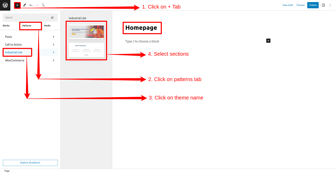 In order to setup a theme with a block pattern, follow the below steps.