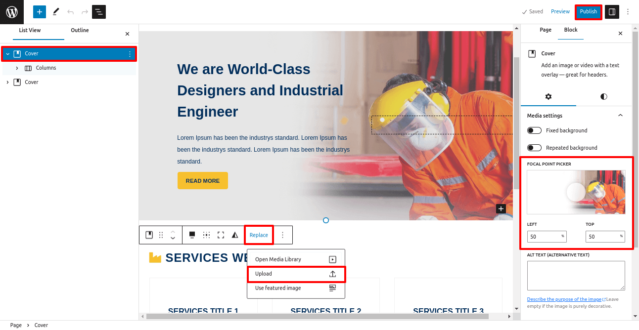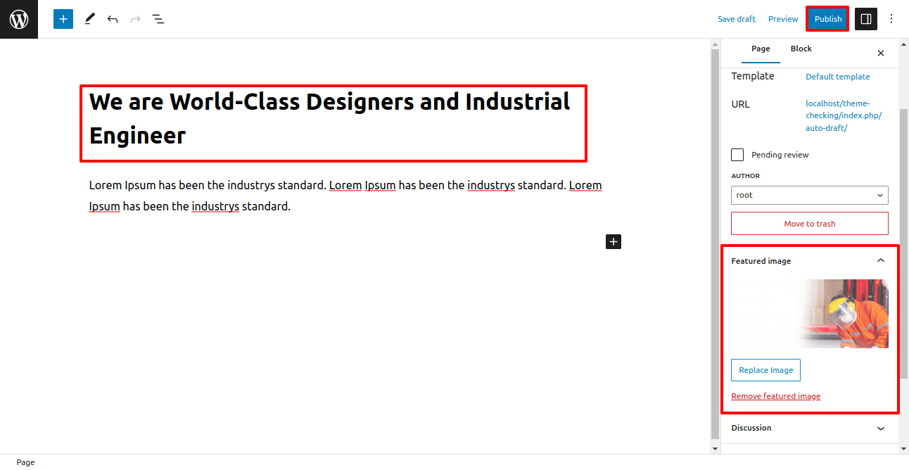Add title, content and feature image.