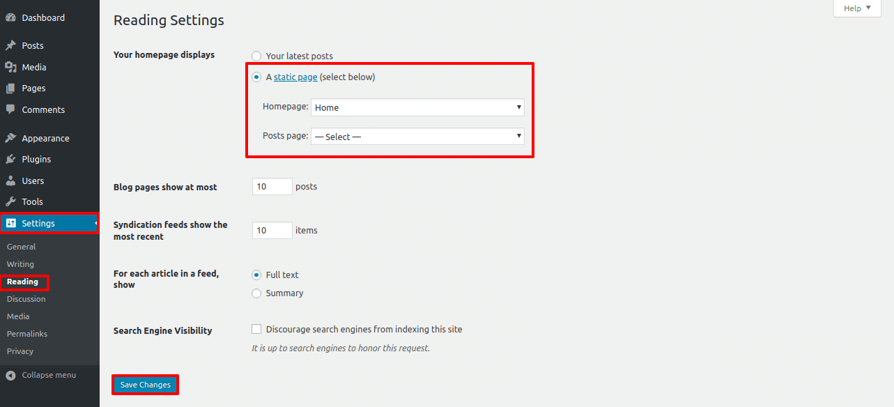 3.2. you can select static home page by two methods
