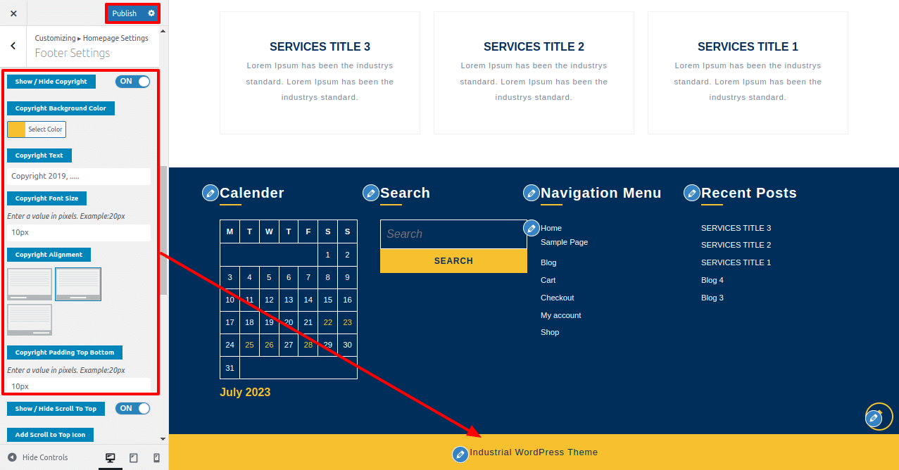 In order to setup the copyright section, follow the below steps.