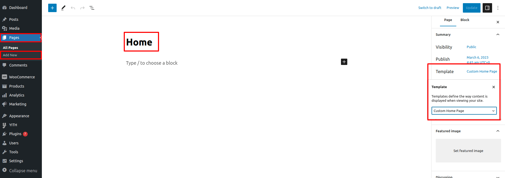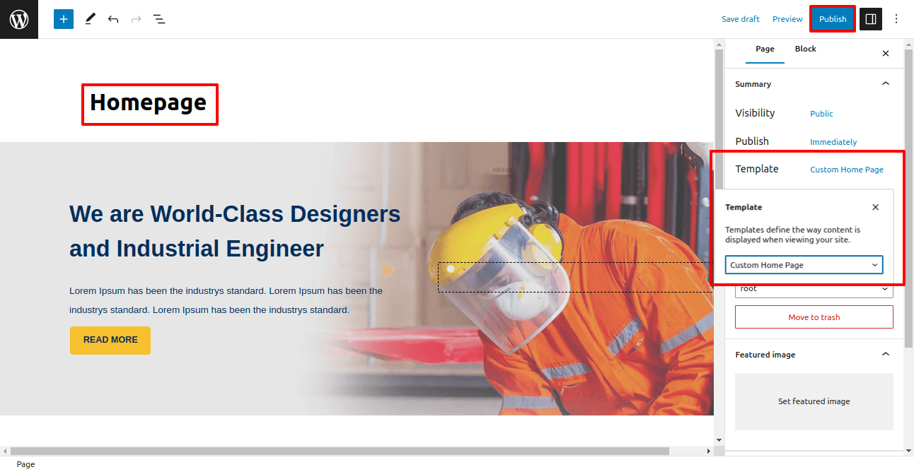 3.1. Create a new page and name it as "Home" then select the template "Custom Home page".