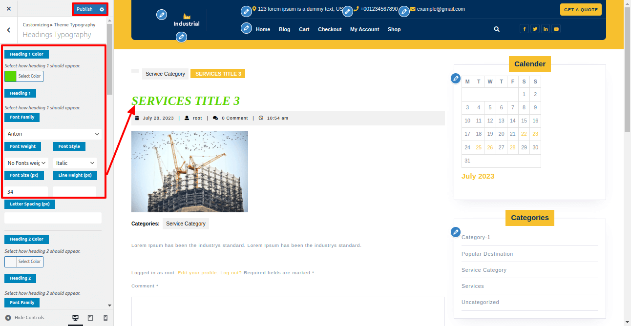 In Headings Typography you can change color, font style, font-size, line height, font-weight, letter-spacing of Headings.
