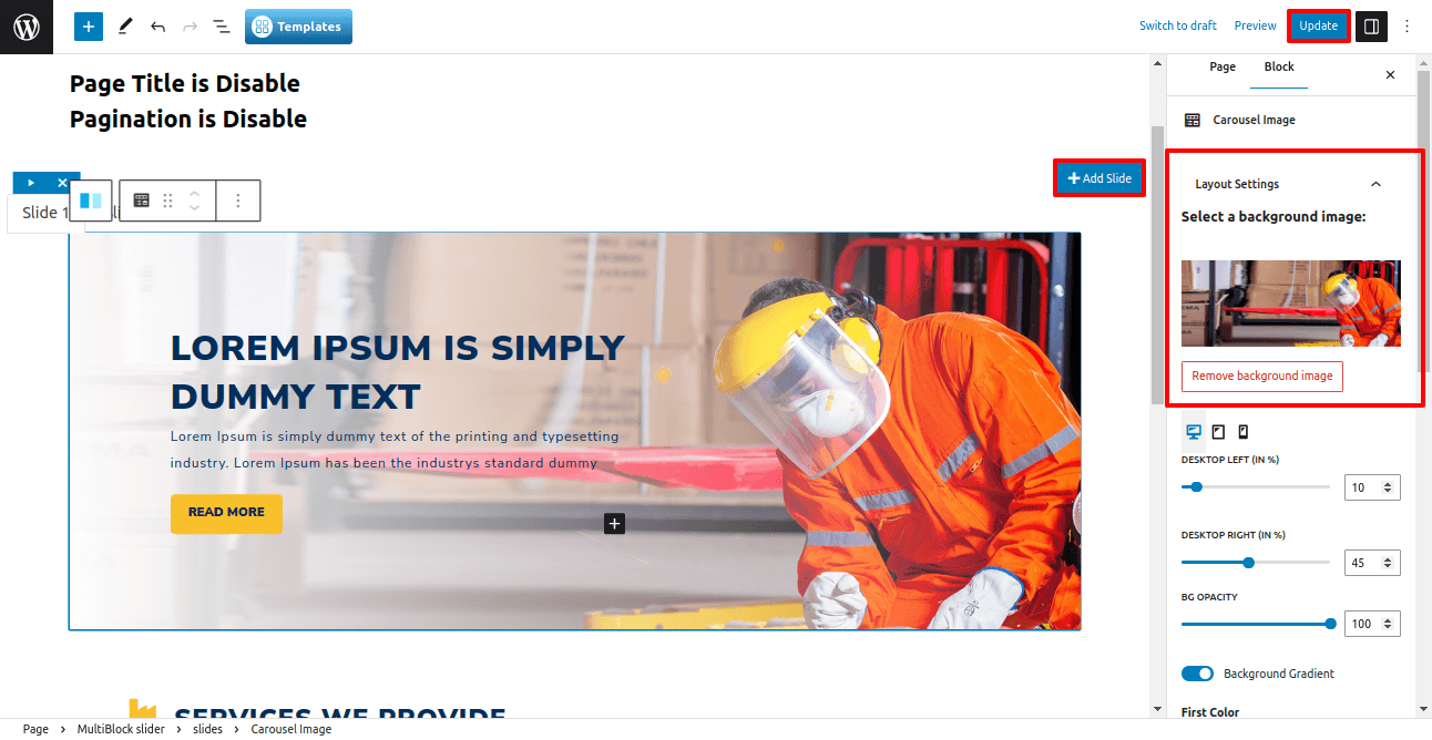 Now you can add more slides and slider background images.