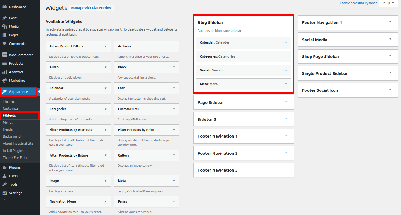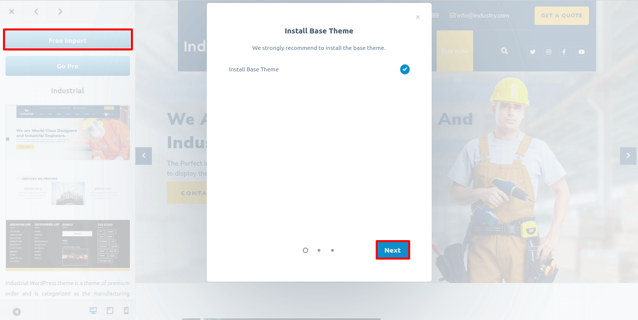 First, activate the Industrial Lite theme.