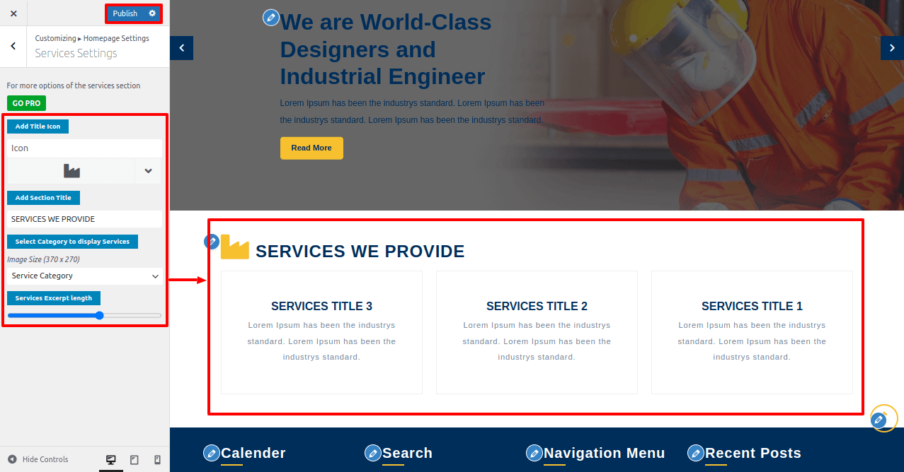 In order to setup services section, follow the below steps.