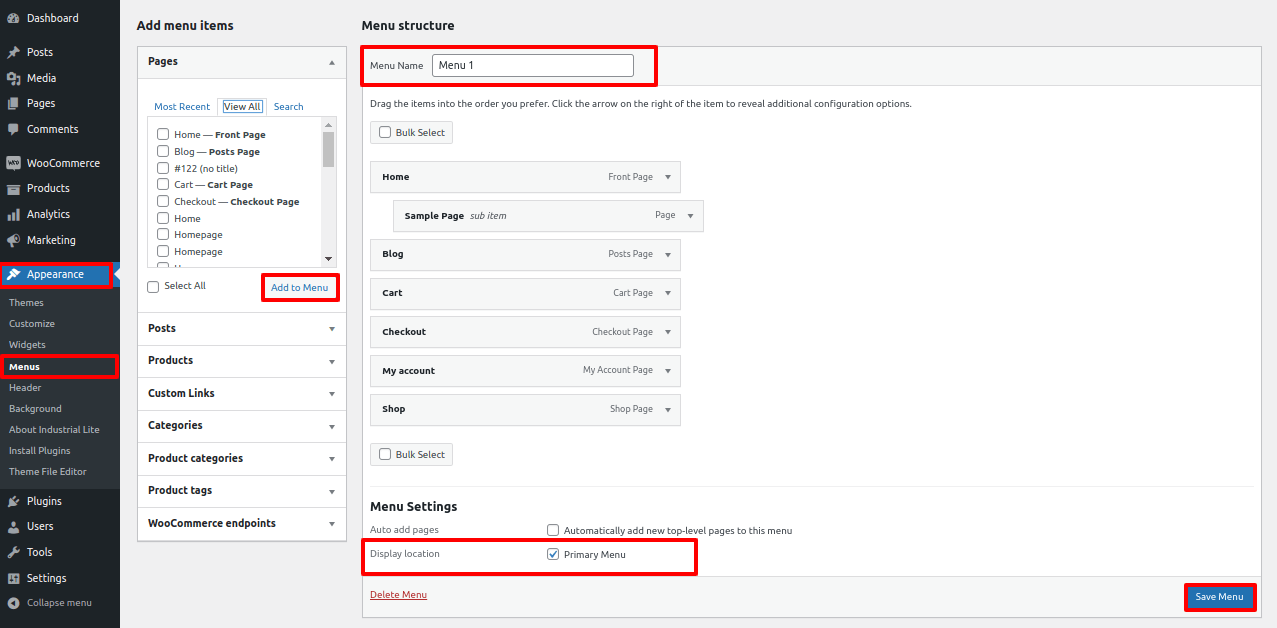 - Goto Appearance >> Menus.