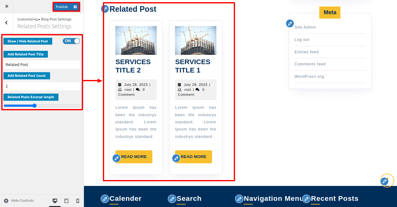Here you have options for related post title, Show/hide related post and related post count options.