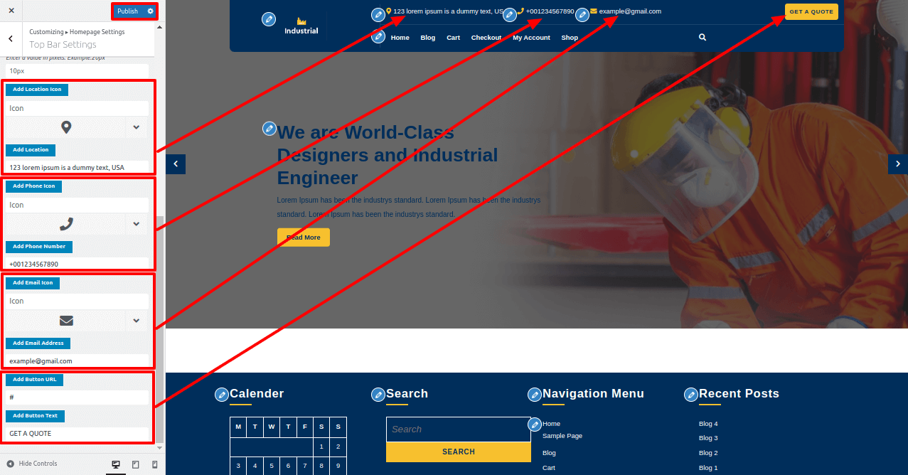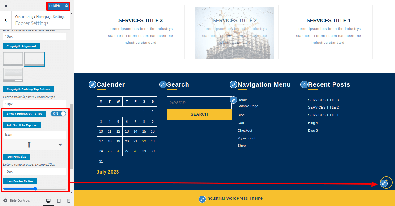In this way, you can set up the footer section.