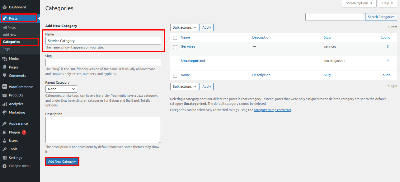 Go To Dashboard >> Posts >> Categories