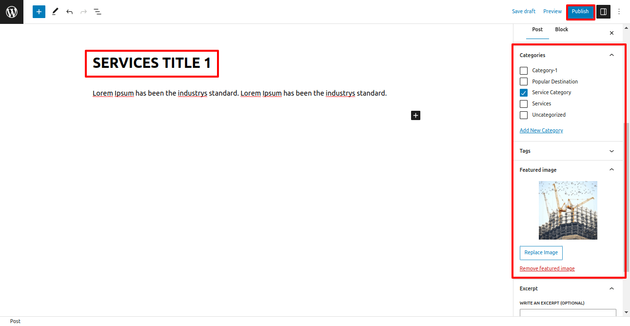 Add title, featured image and assign category.