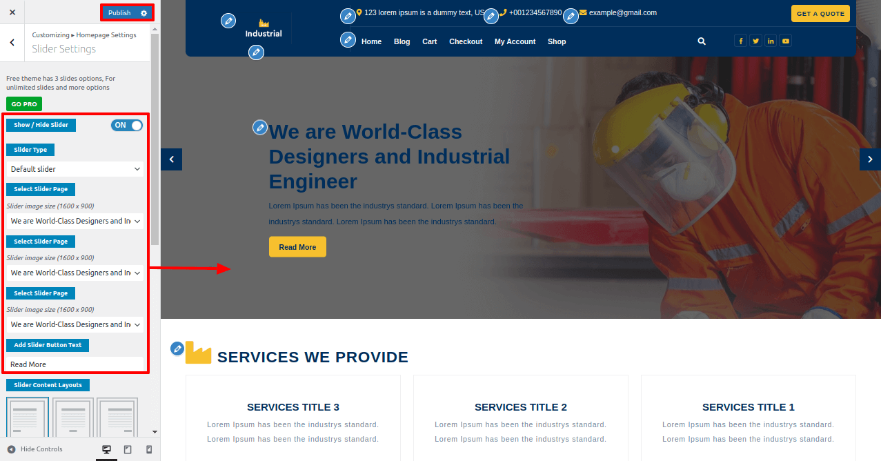 In order to setup the Slider Section, follow the below steps.