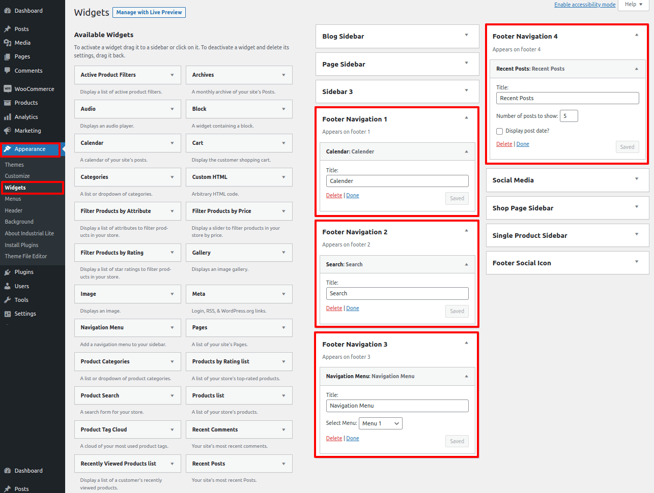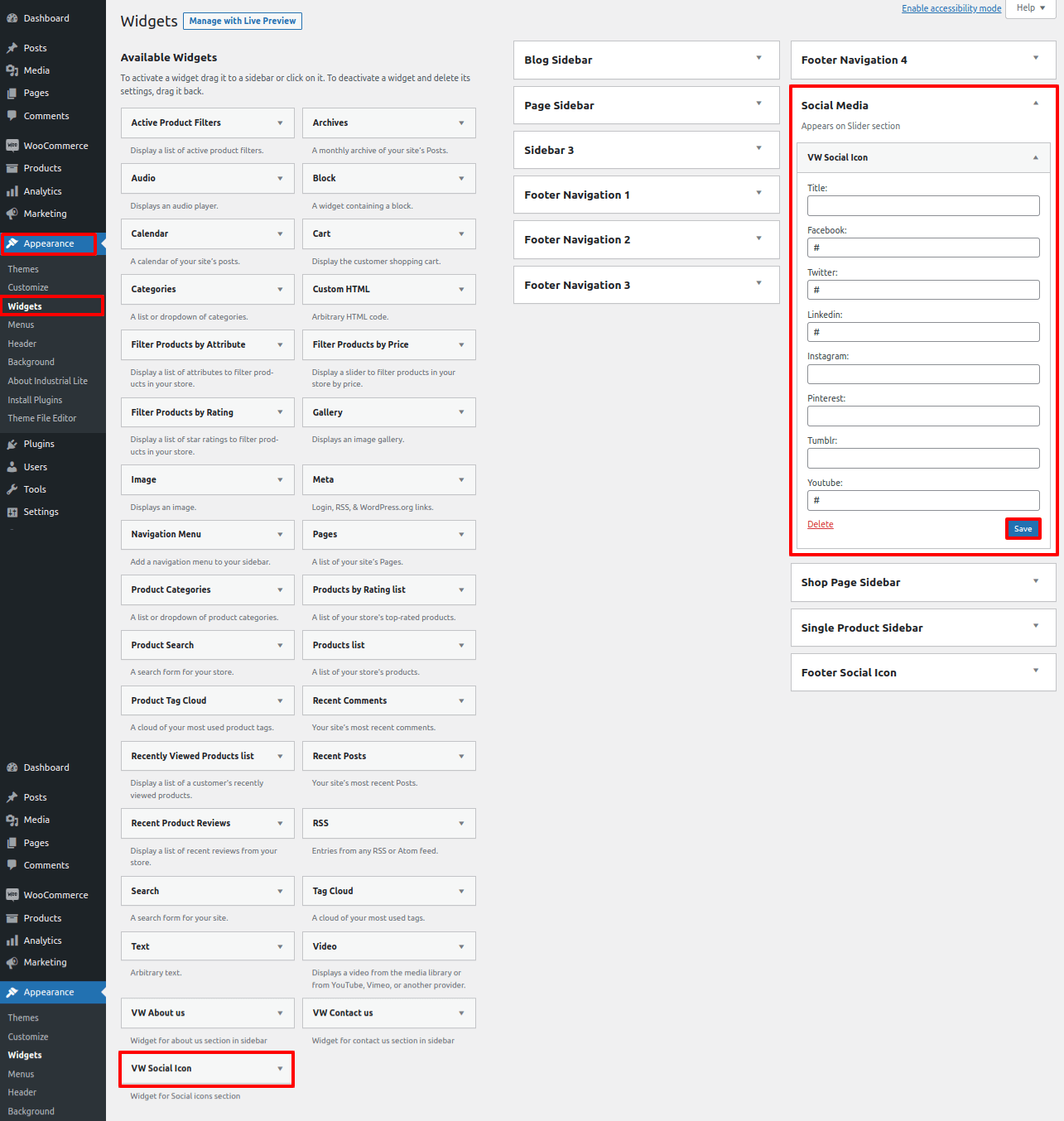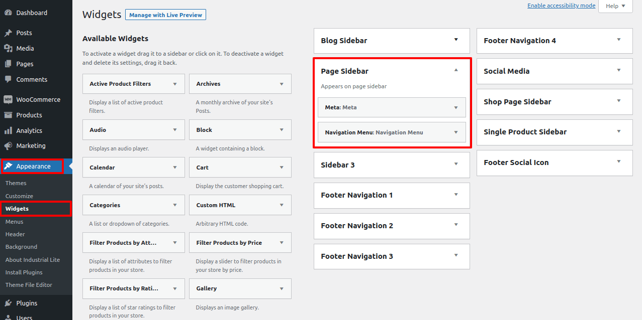 Go To Dashboard >> Appearance >> Widgets