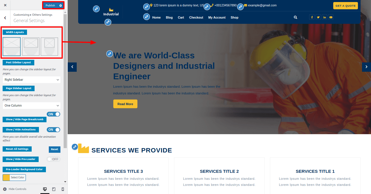 Go To Dashboard >> Appearance >> Customize >> VW Settings >> Other Settings >> General Settings