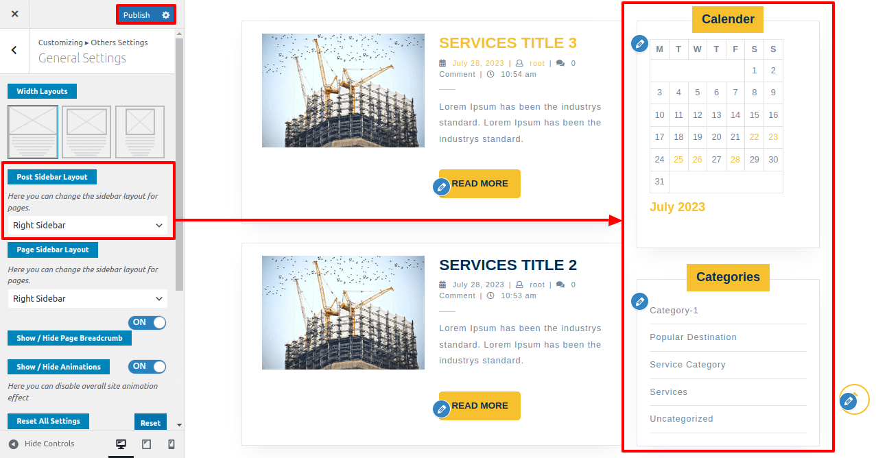 In this, you can change the Blog post sidebar layout.