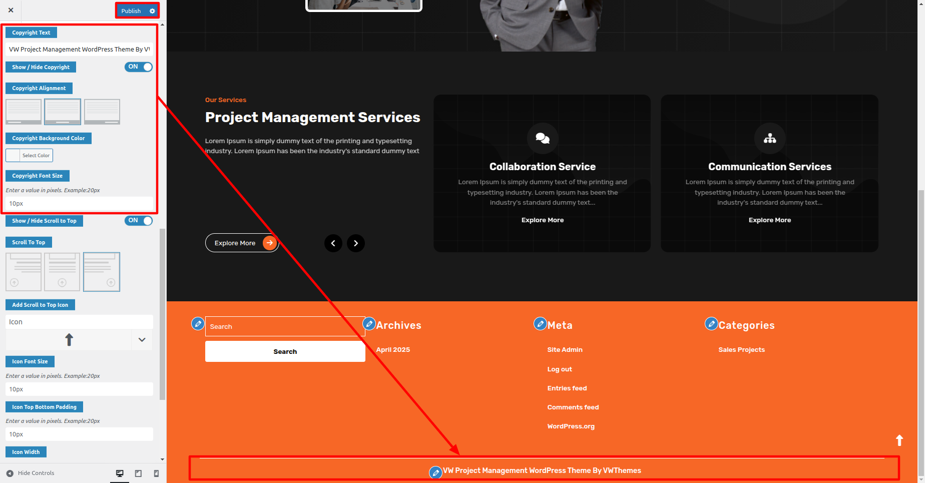 Go To Dashboard > Appearance > Customize > Homepage Settings > Footer Setting