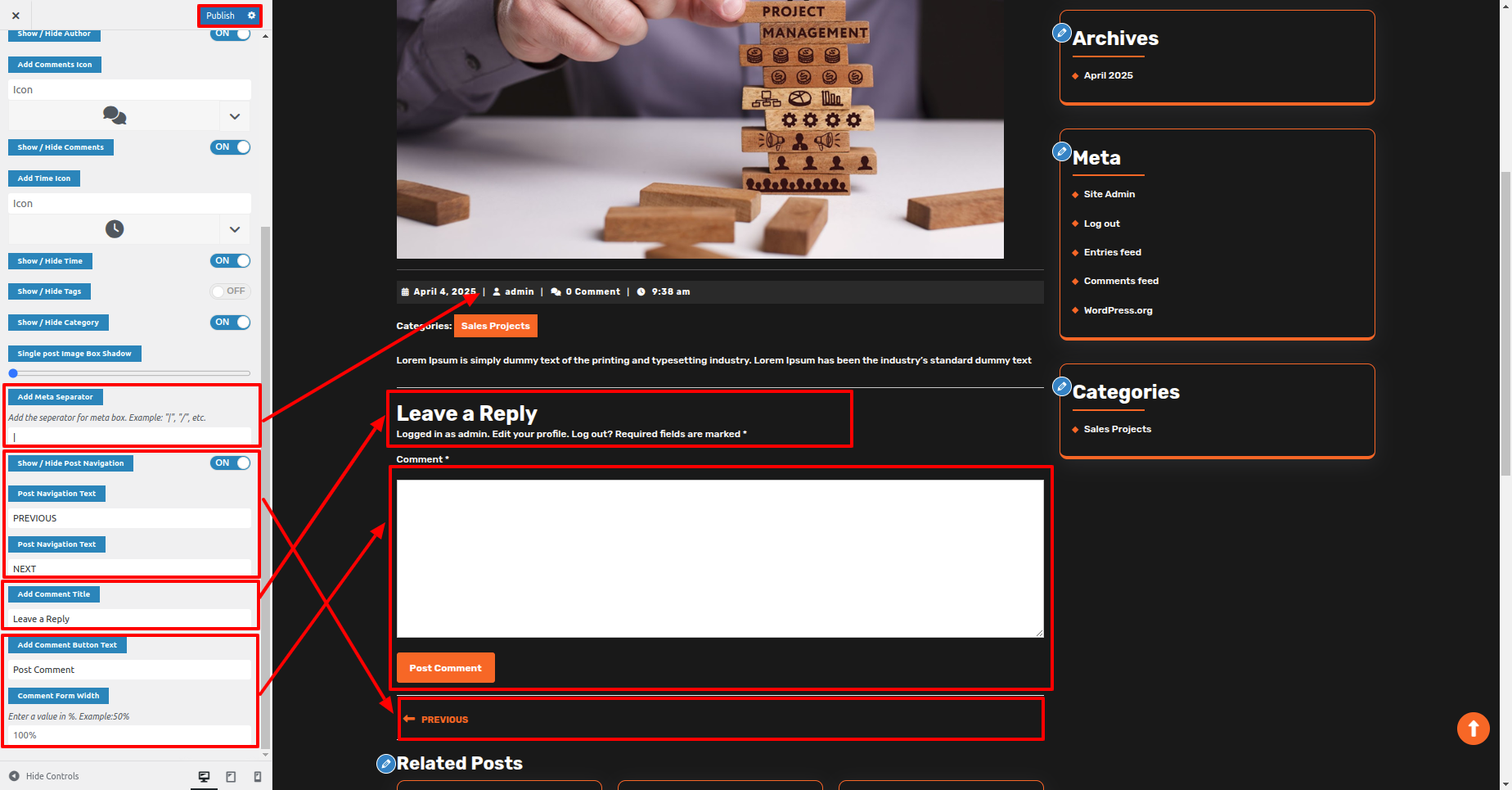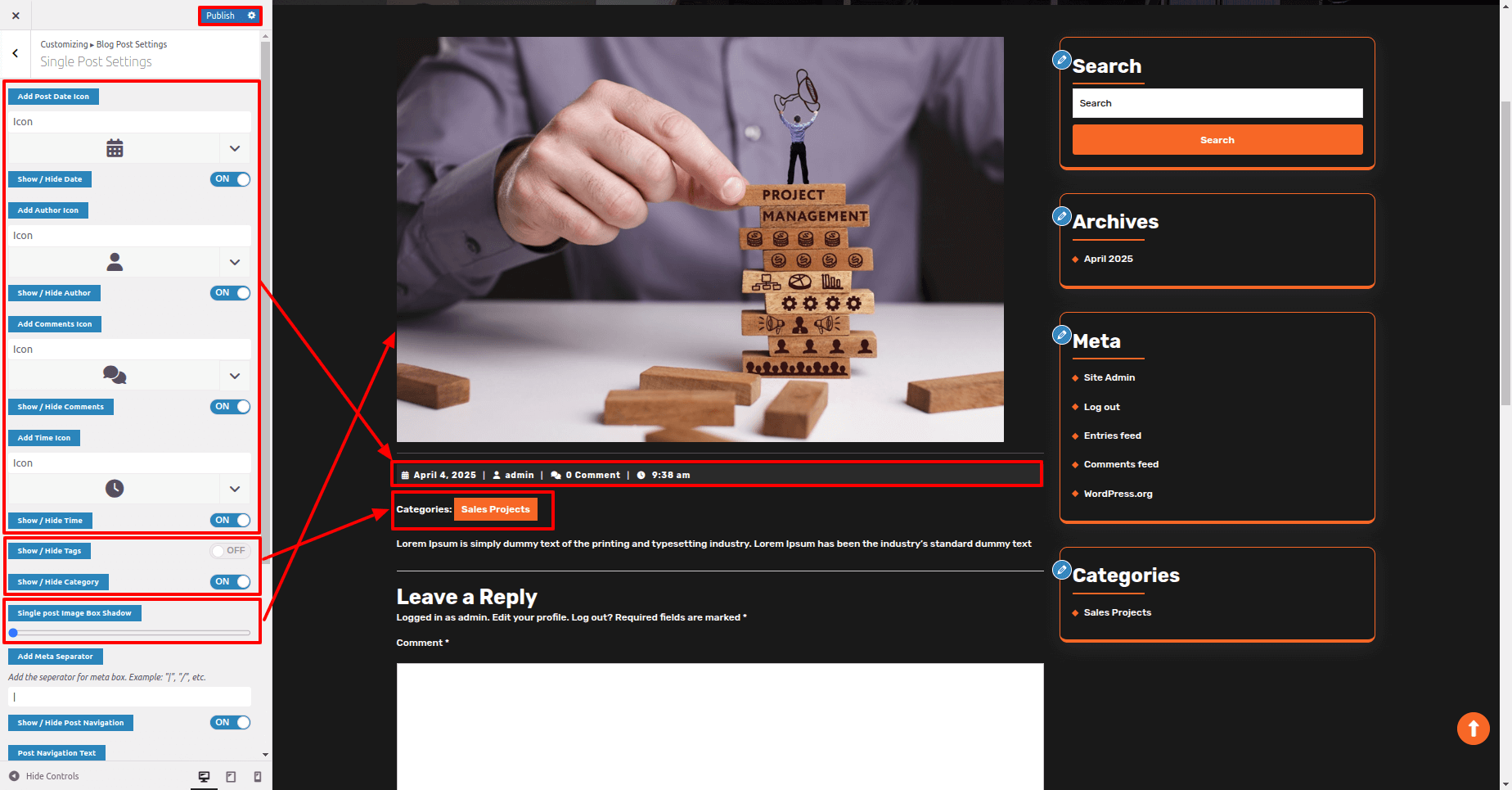 Go To Dashboard > Appearance > Customize > Blog Post Setting > Single Post Settings