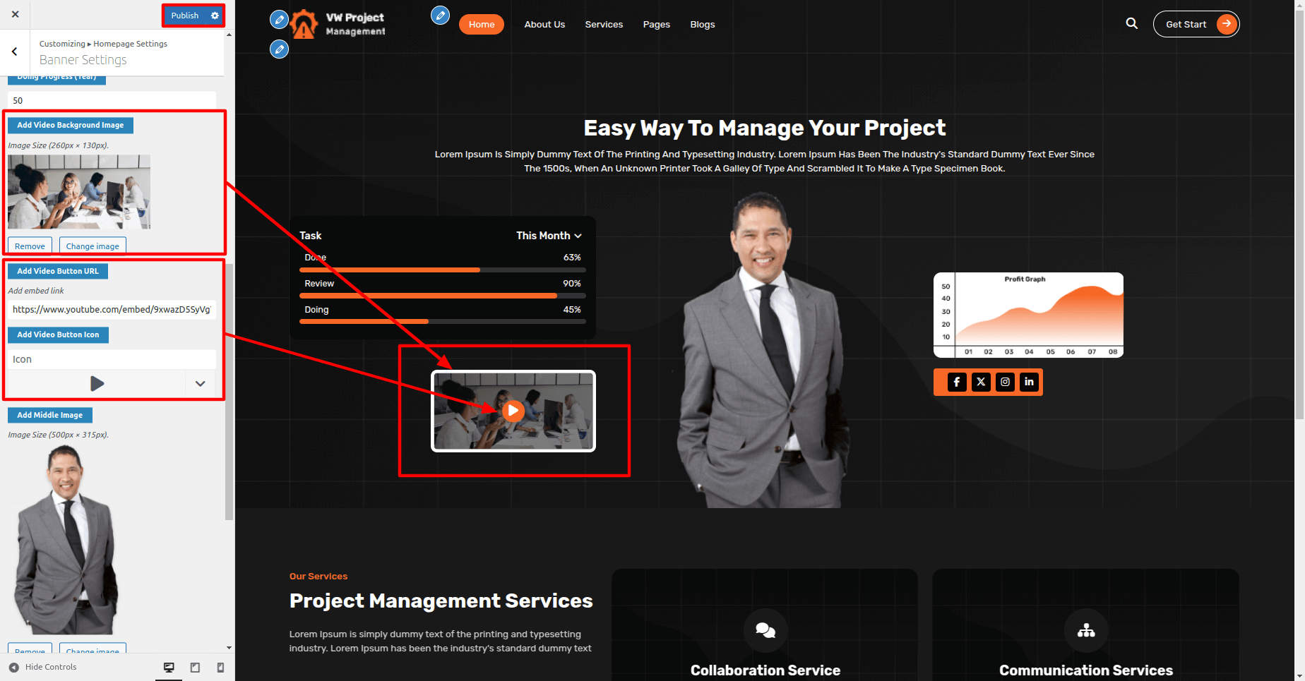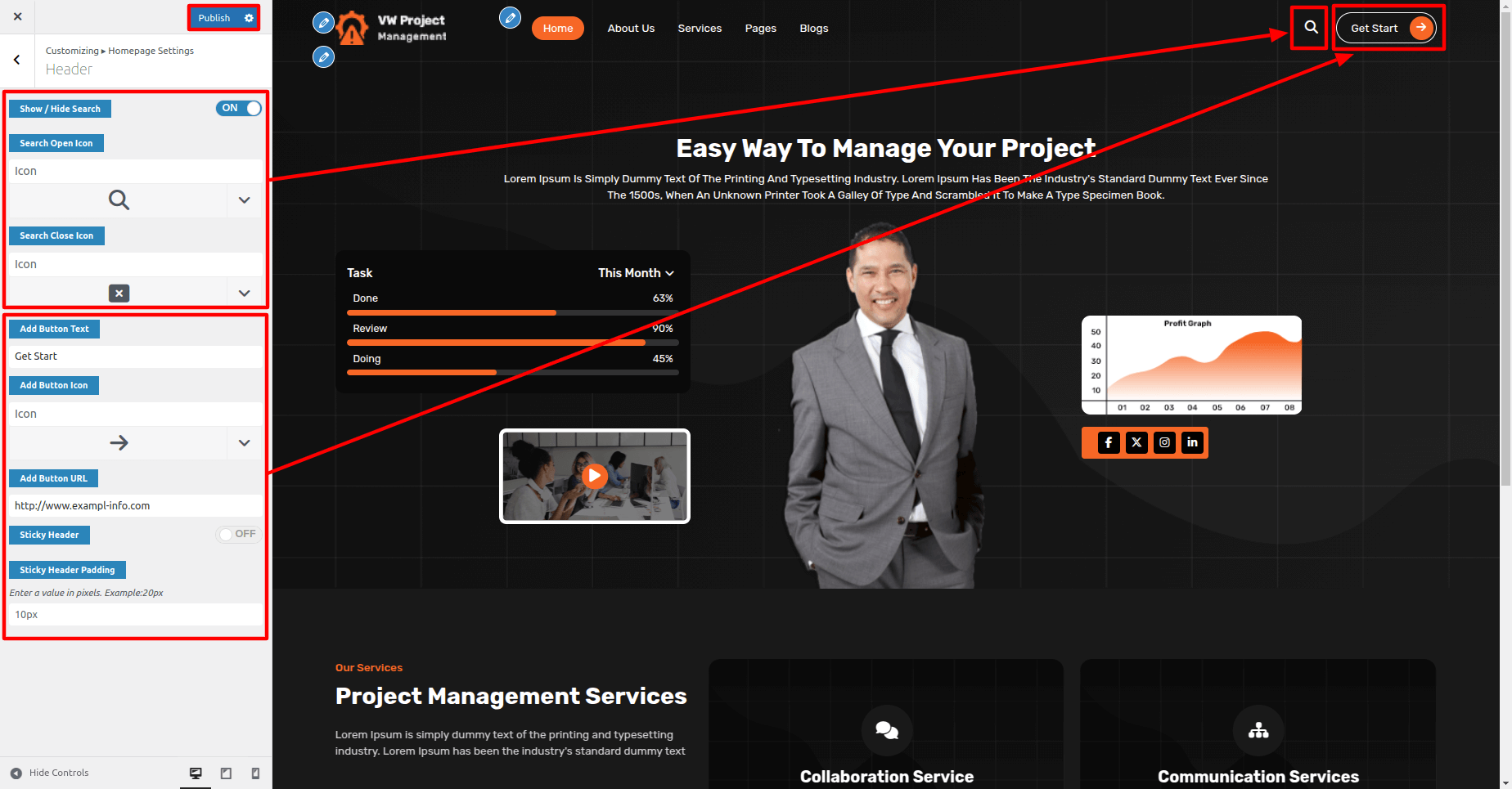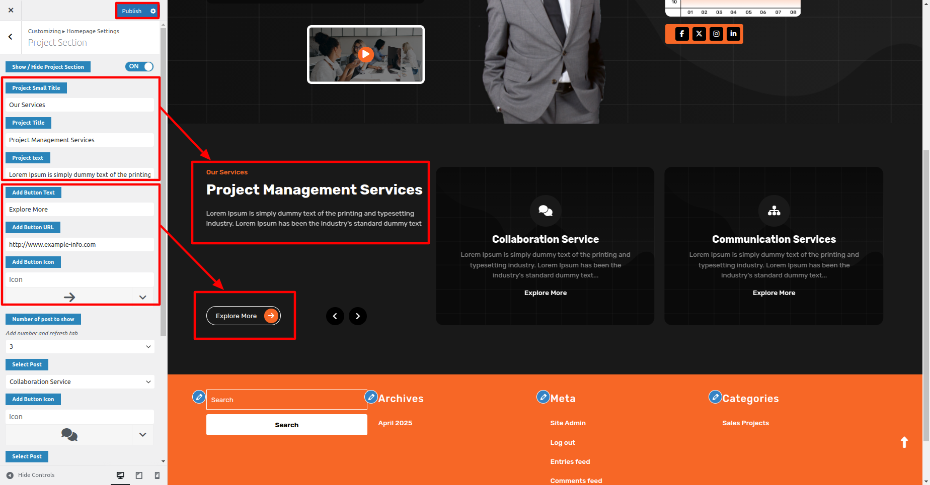 Now Go To Dashboard > Appearance > Customize > Homepage Settings > Project Section