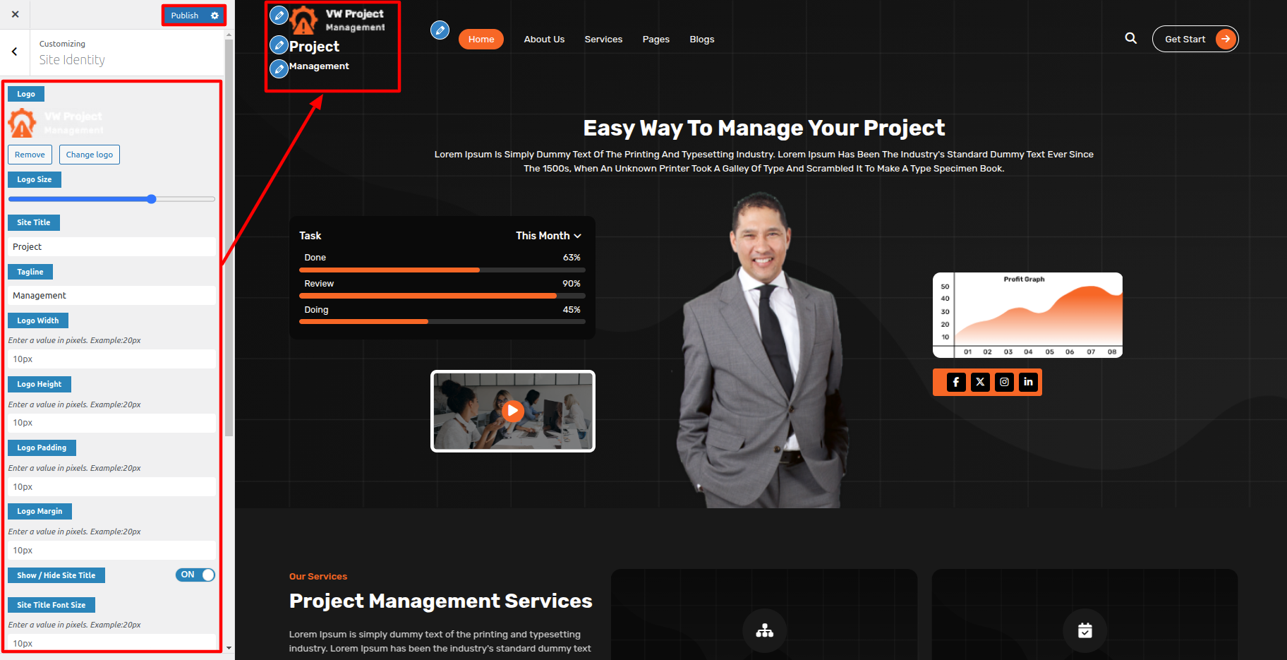 | Allow To Set Site Title, Tagline, Logo | ![]() |