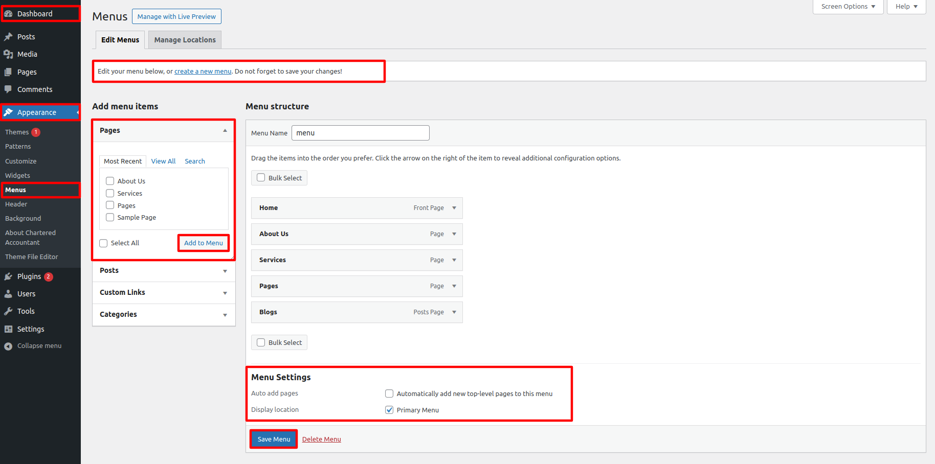 Method 2. Go To Dashboard > Appearance > Customize > Homepage Settings