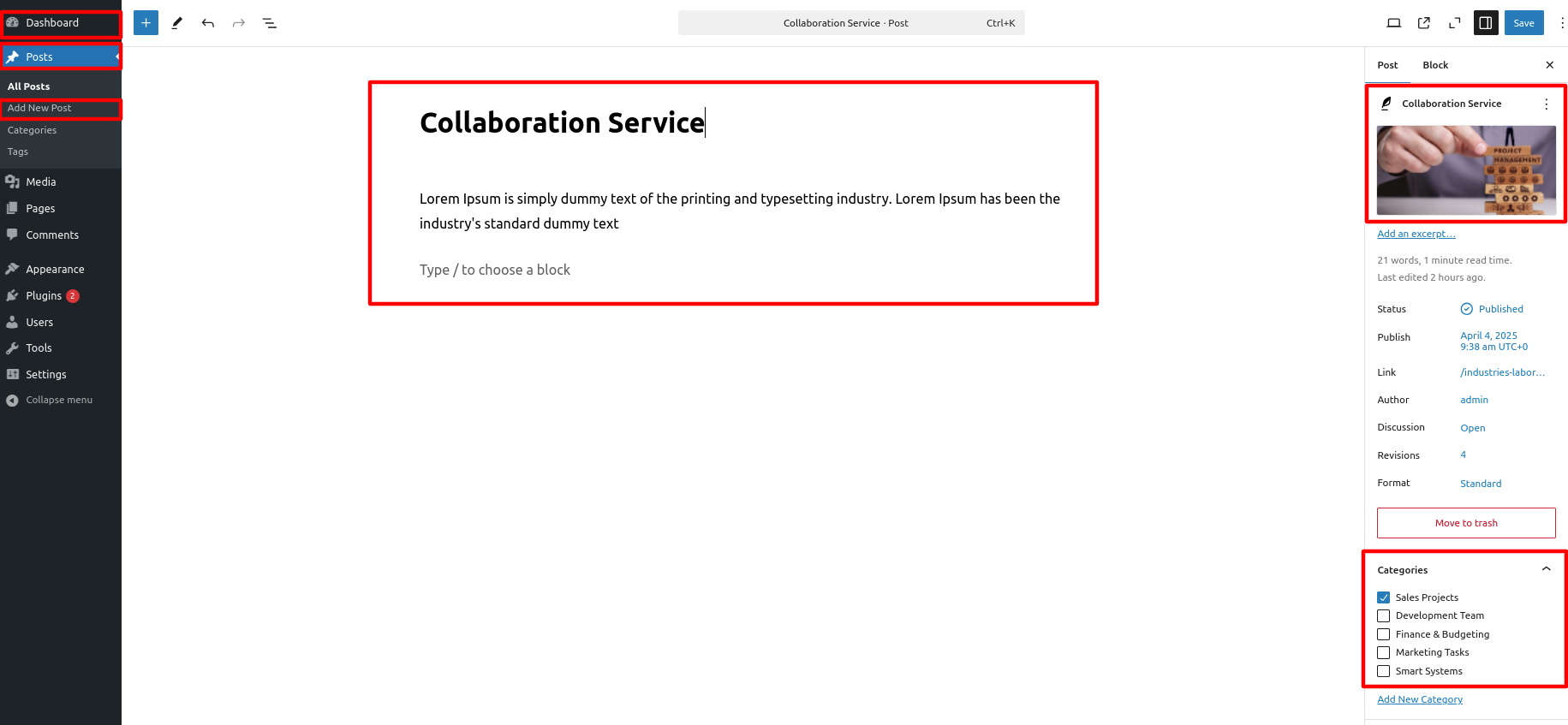 Add Title, Content, Set Featured Image and select Category, Then click on Publish Button