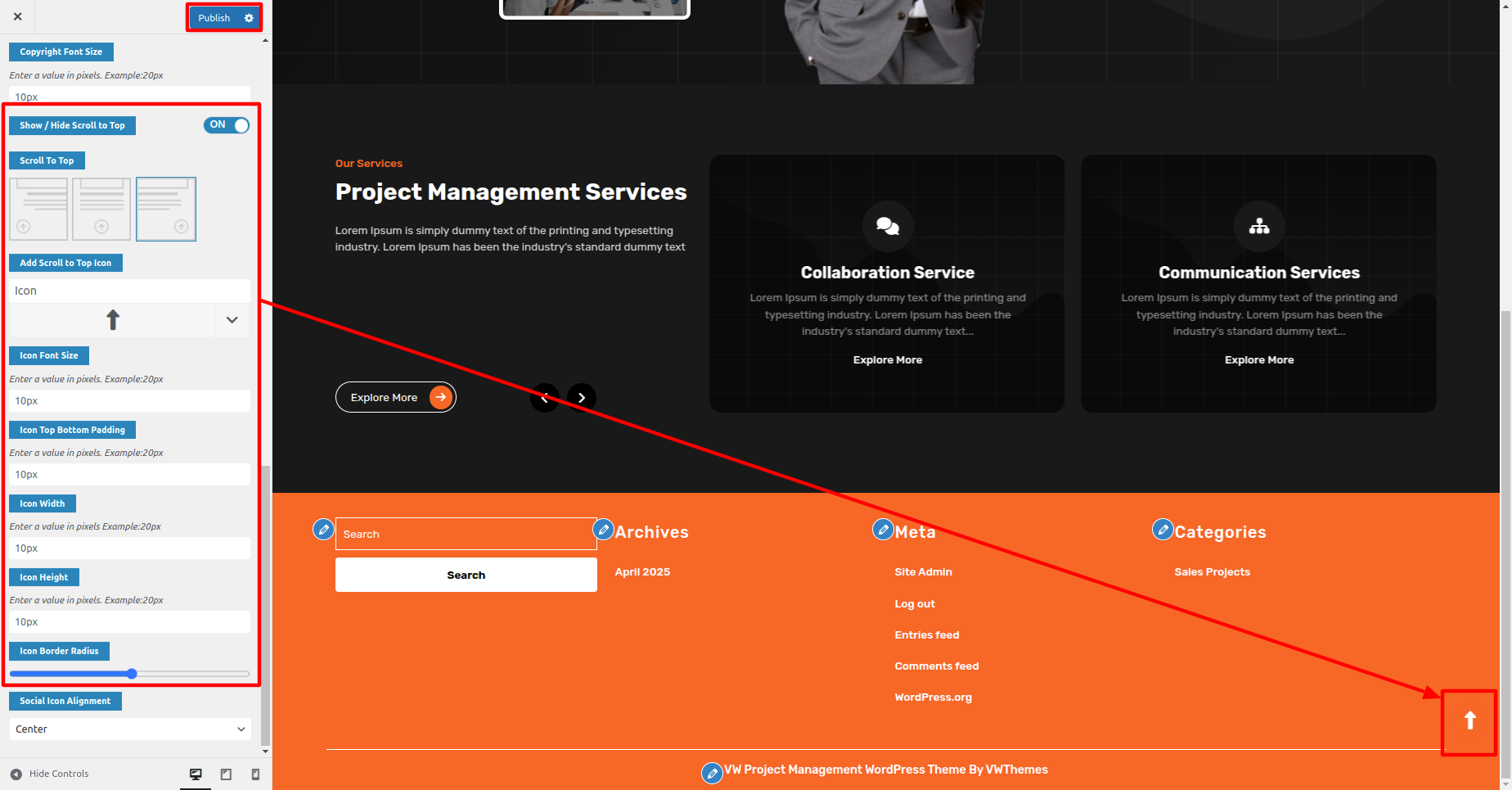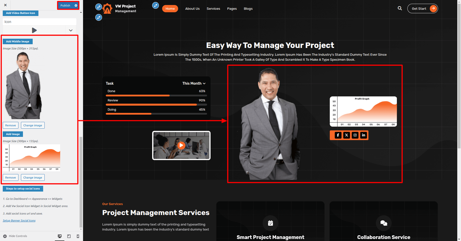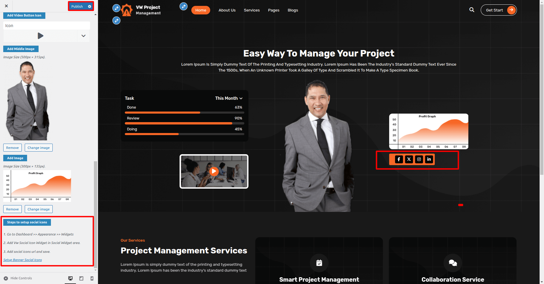 Add Vw Social Icon Widget in Social Widget area as shown in Image below.