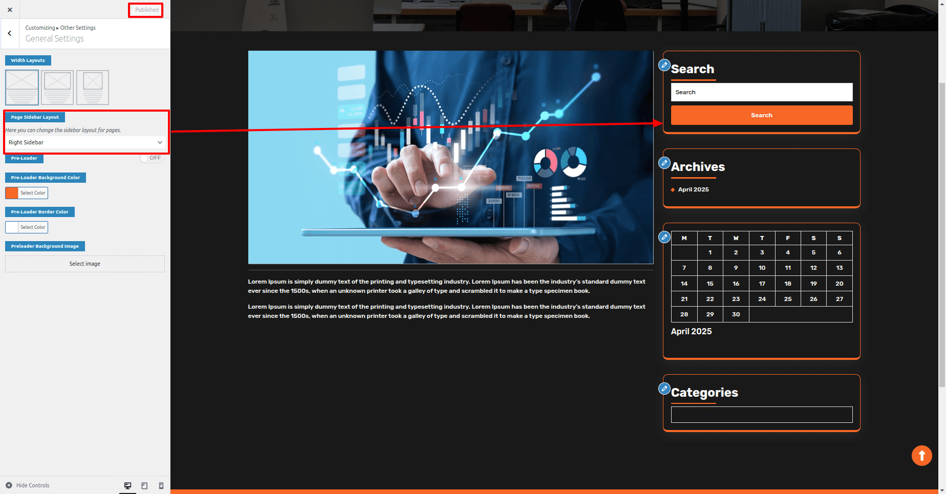 Go To Dashboard > Appearance > Customize > Other Setting > General Setting