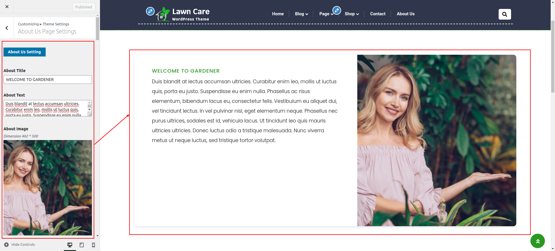 Go to Appearance >> Customize >> Theme Settings >> About Us Page