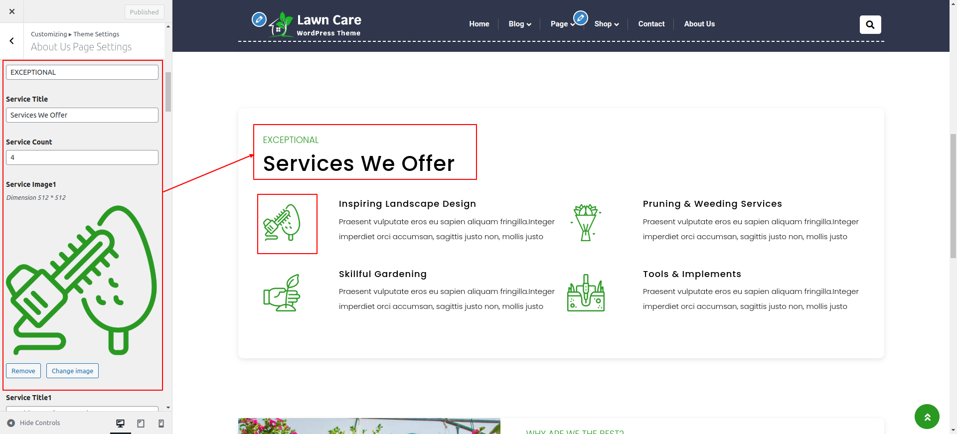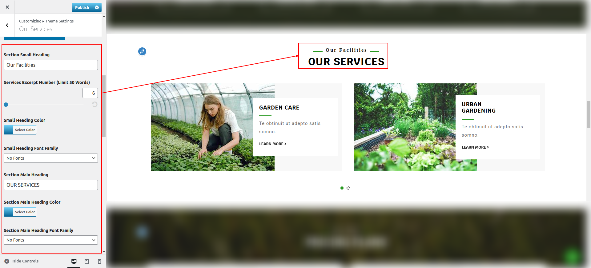 Go to Appearance >> Customize >> Theme Settings >> Our Services Section