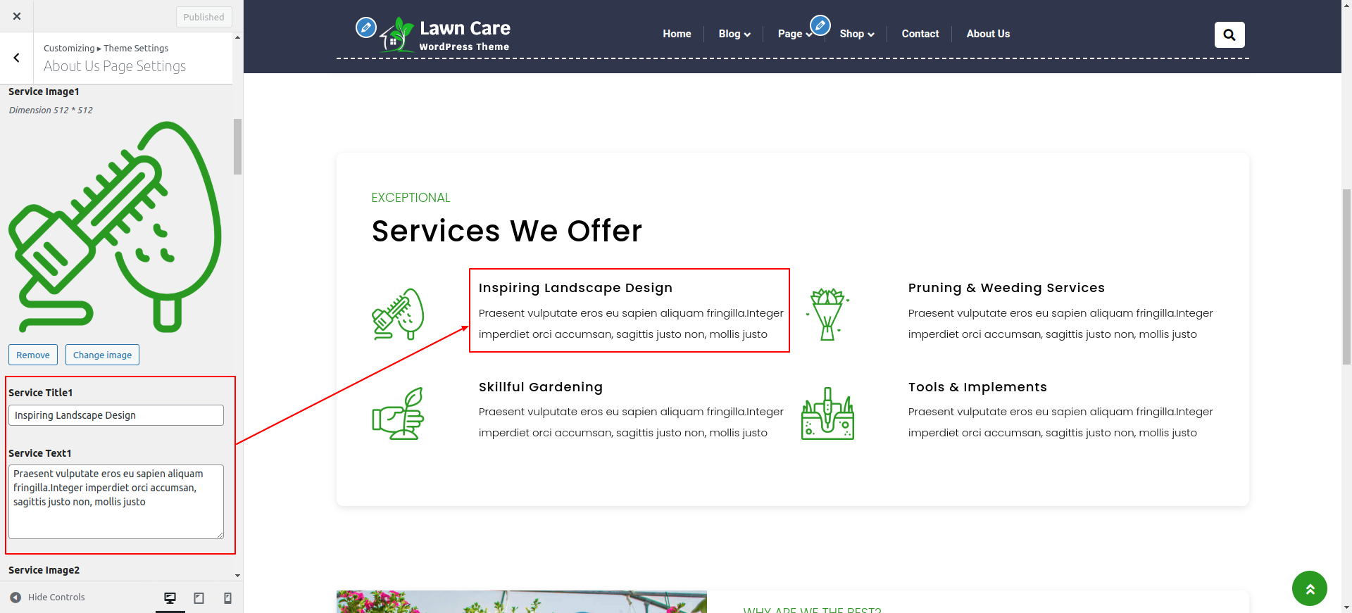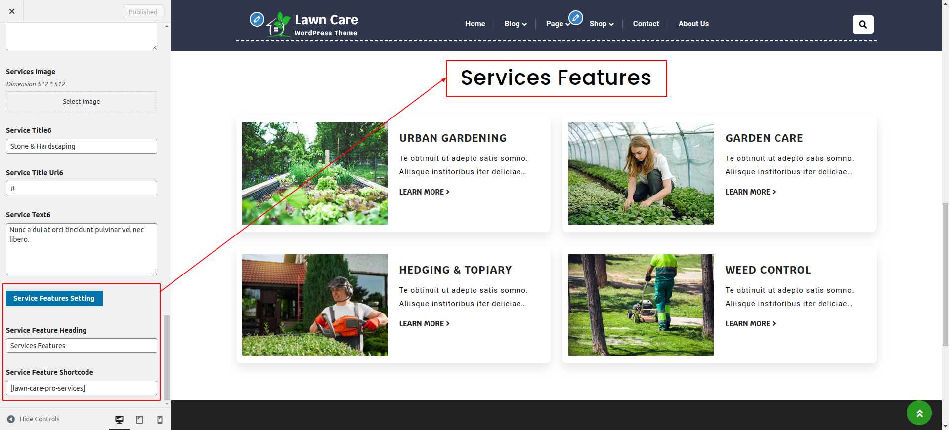 Go to Appearance >> Customize >> Theme Settings >> Service Page