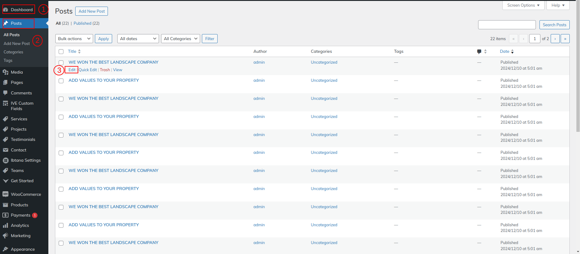 Go to Dashboard >> Post >> Edit