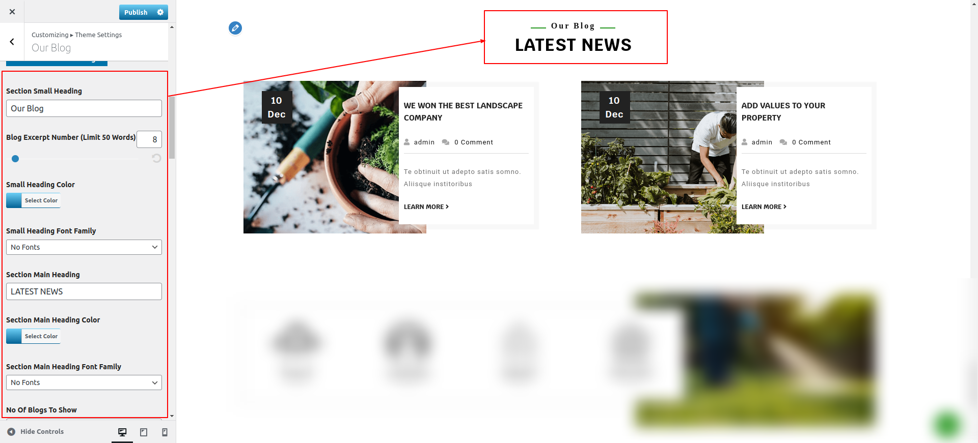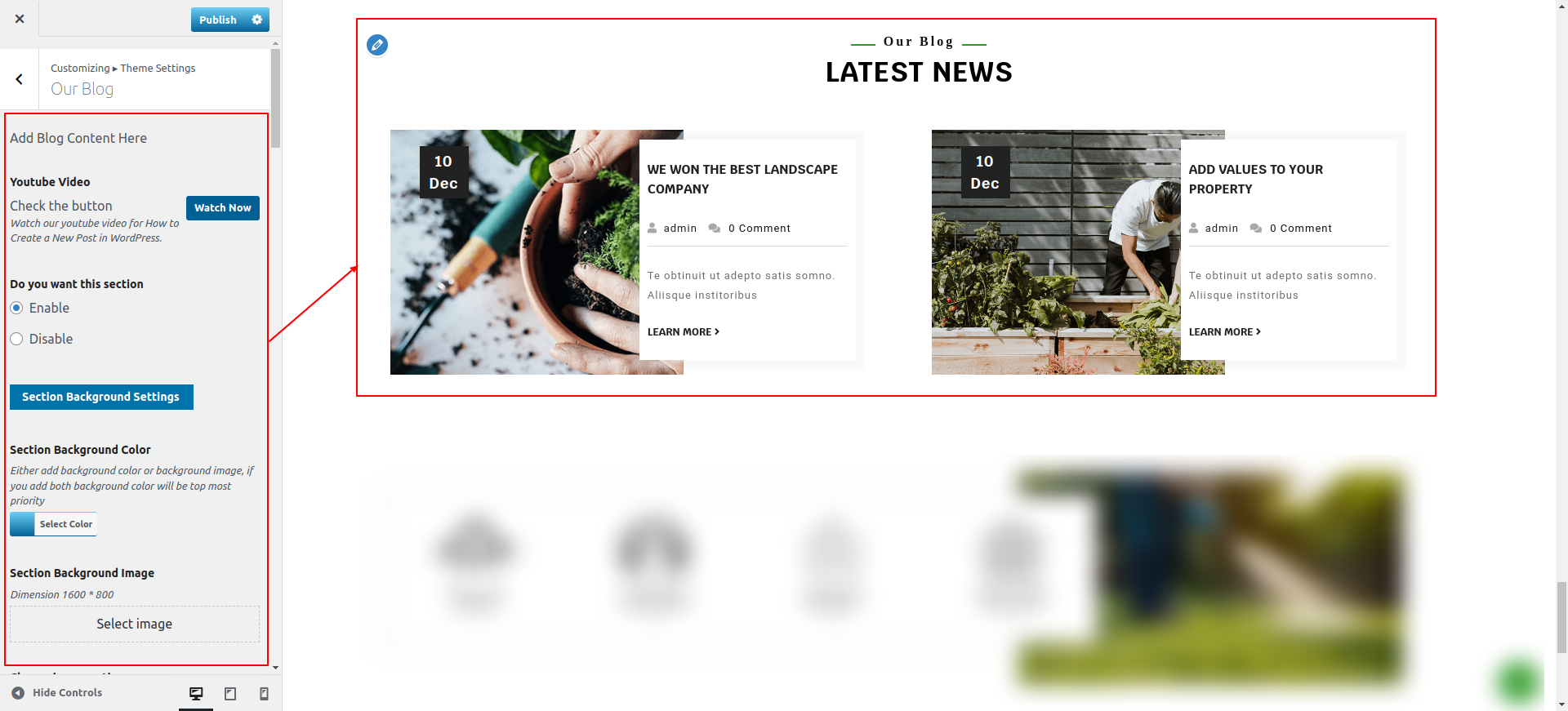 Observe these instructions to set up Our Blogs Section.