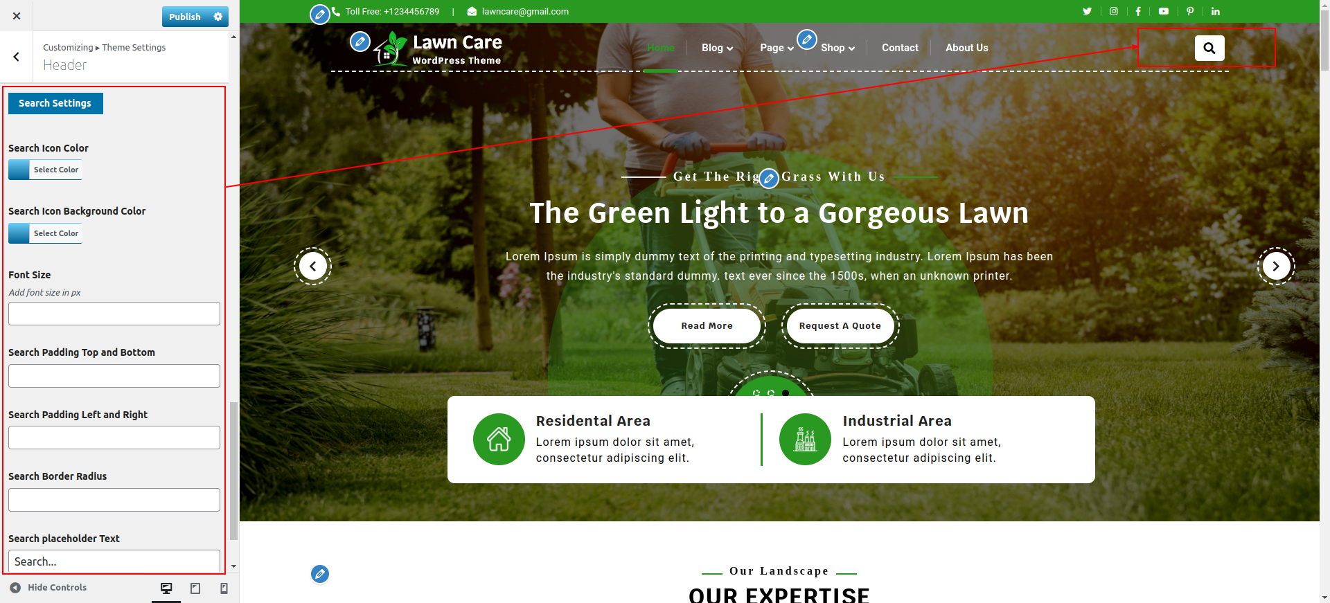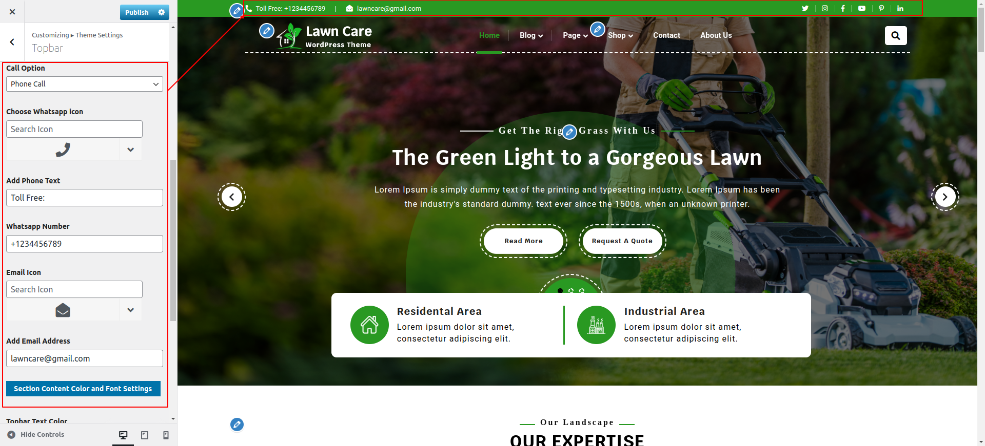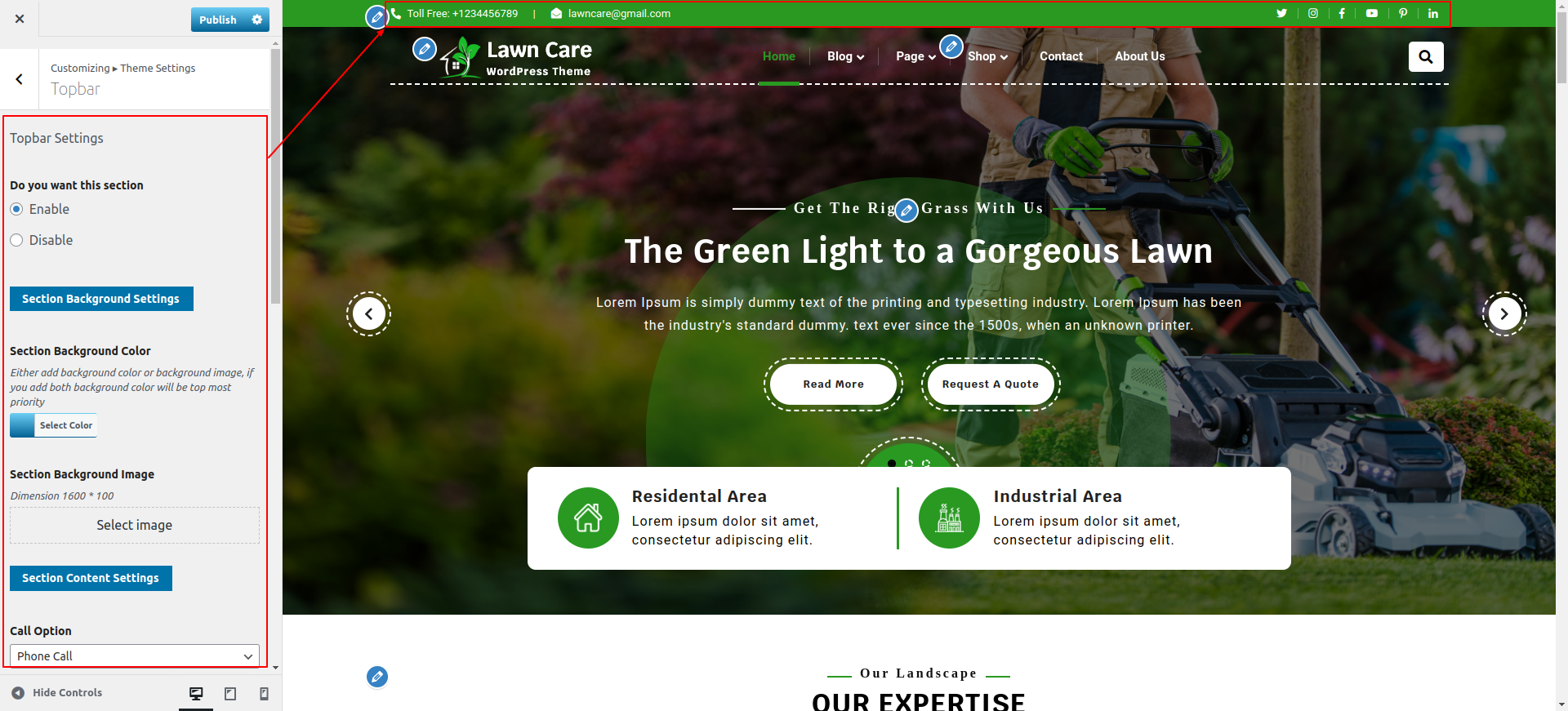 Go to Appearance >> Customize >> Theme Settings >> Our Expertise Section