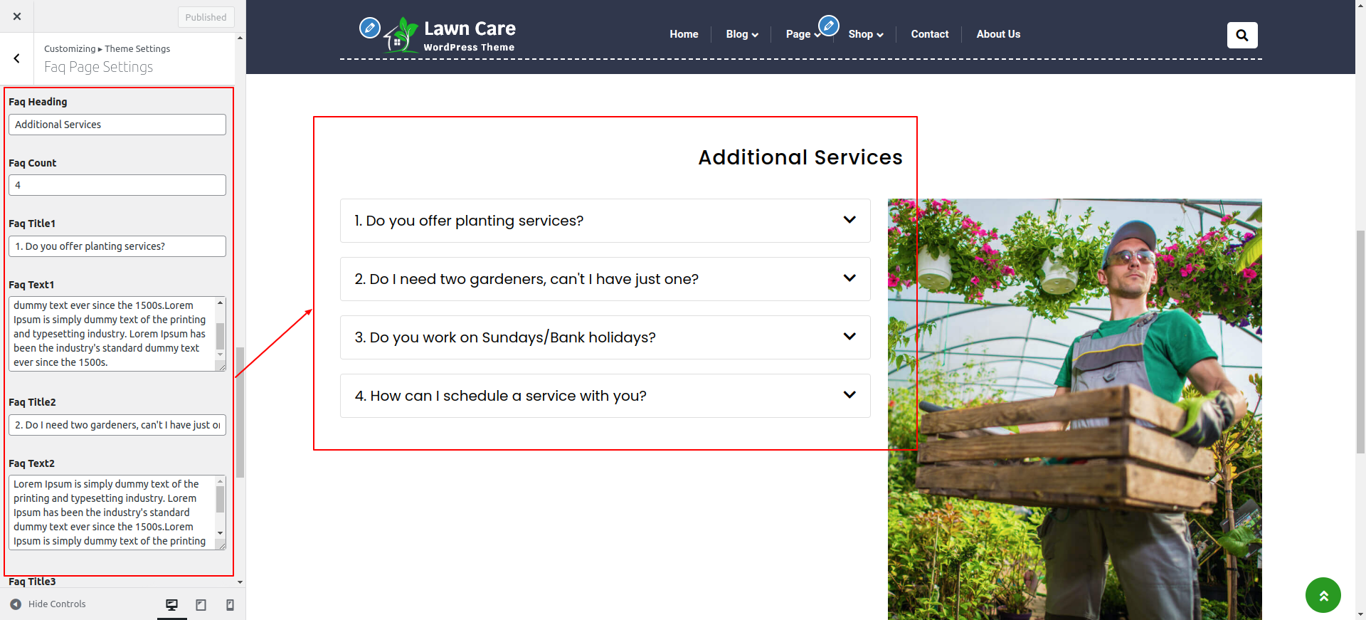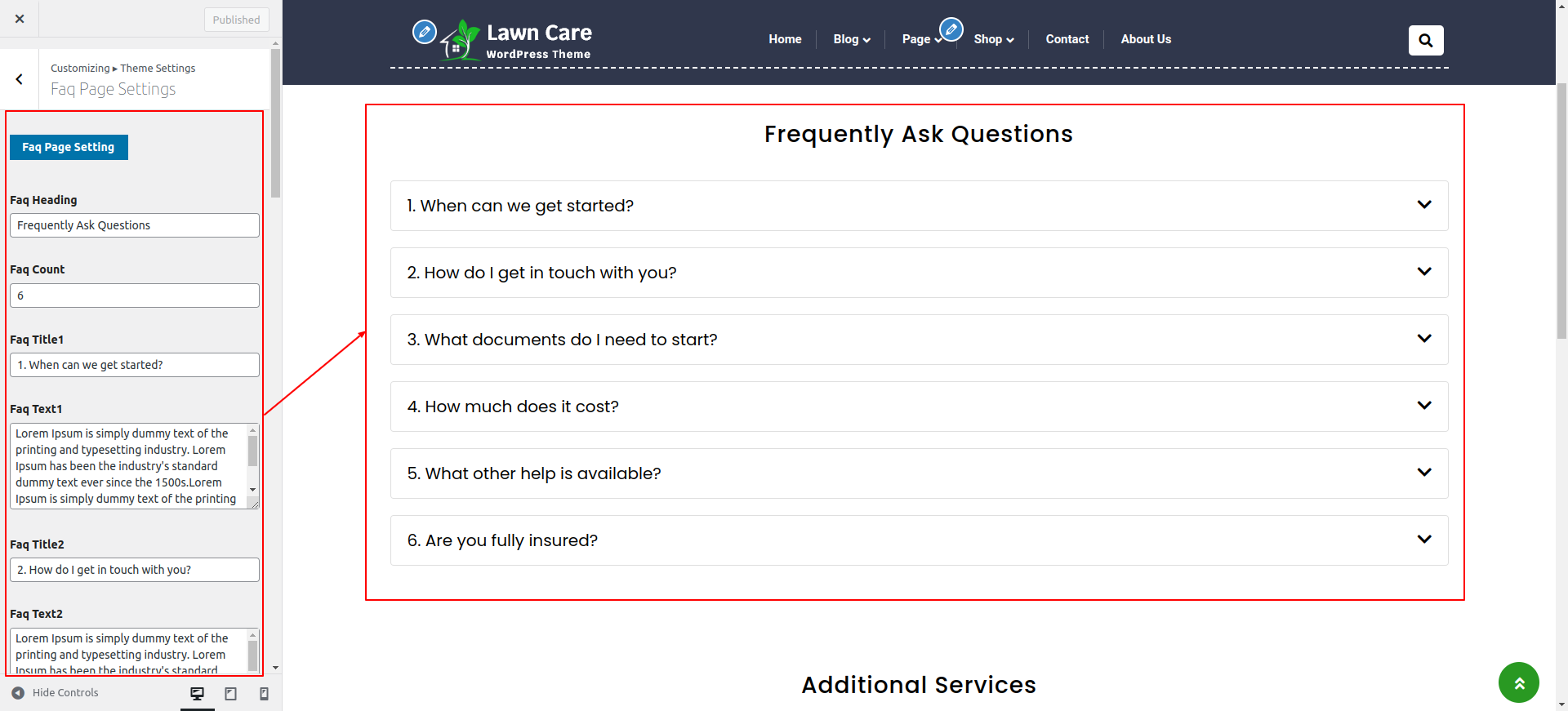 Go to Appearance >> Customize >> Theme Settings >> Faq Page Settings