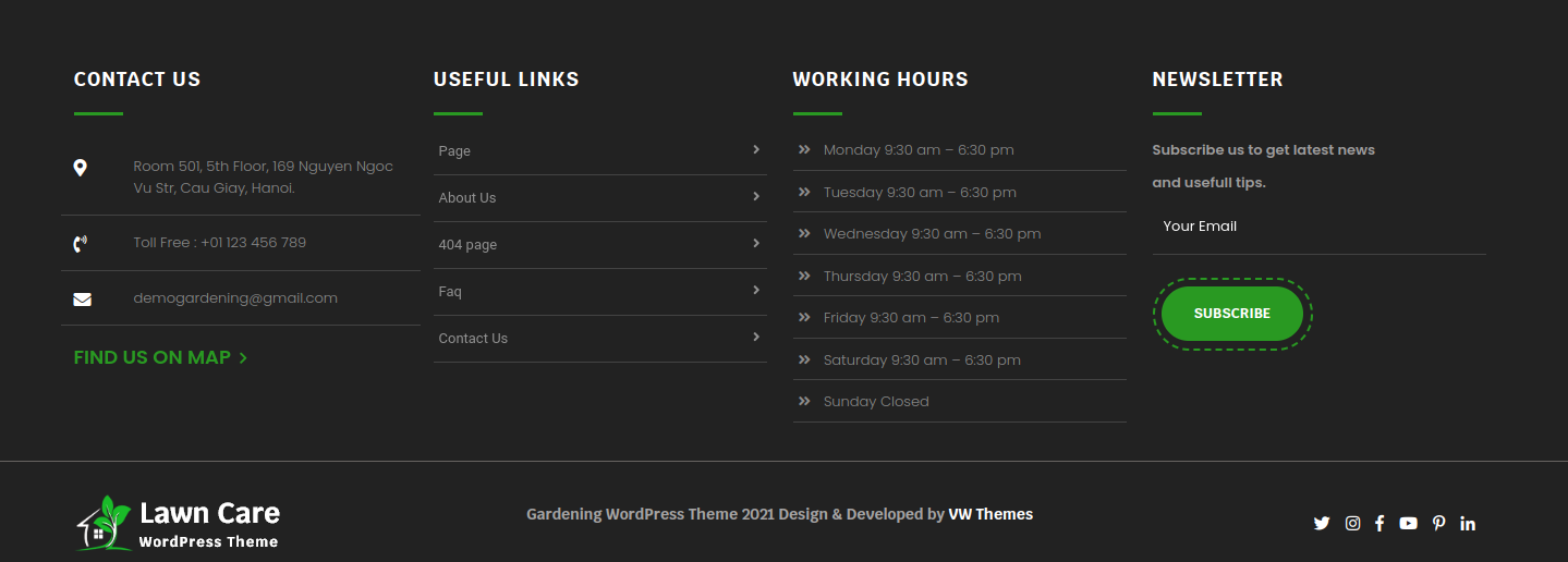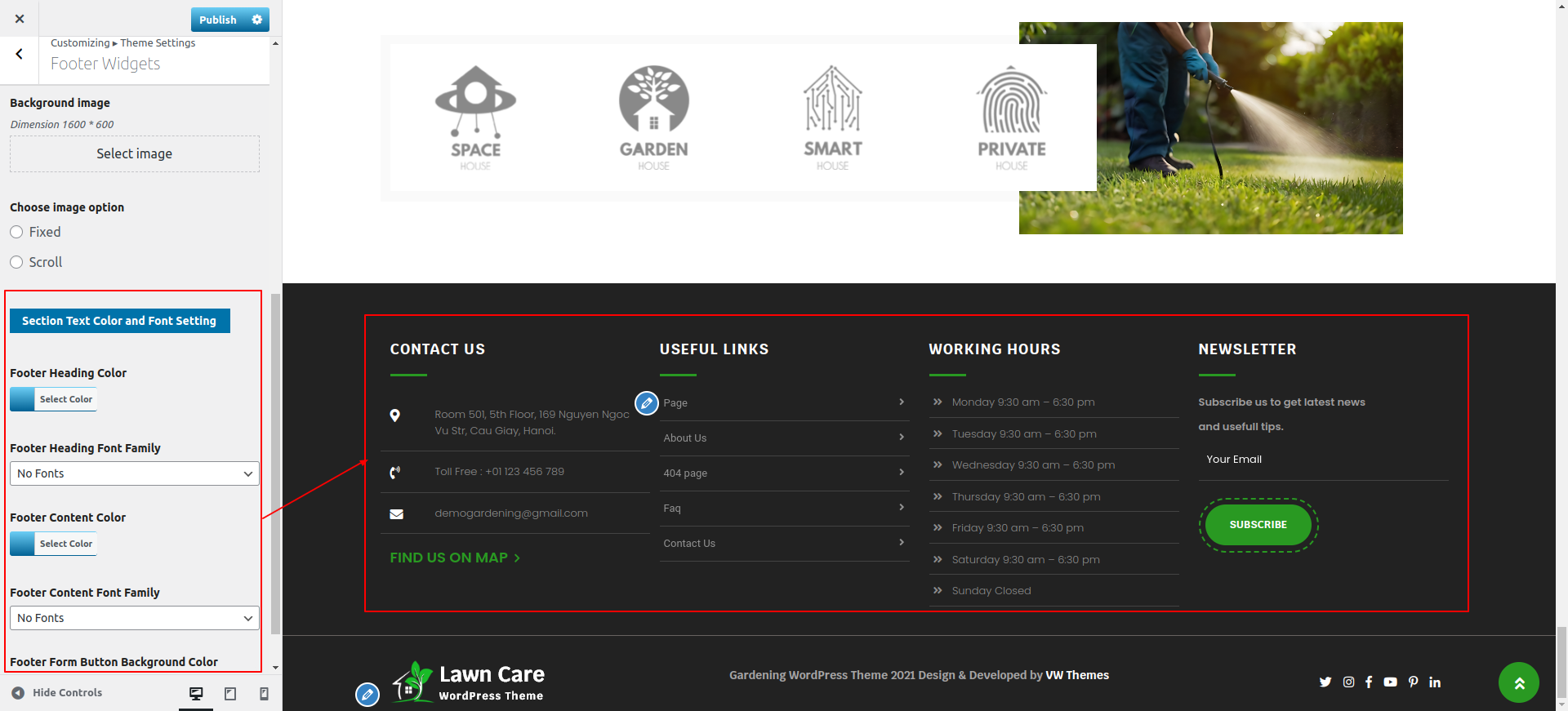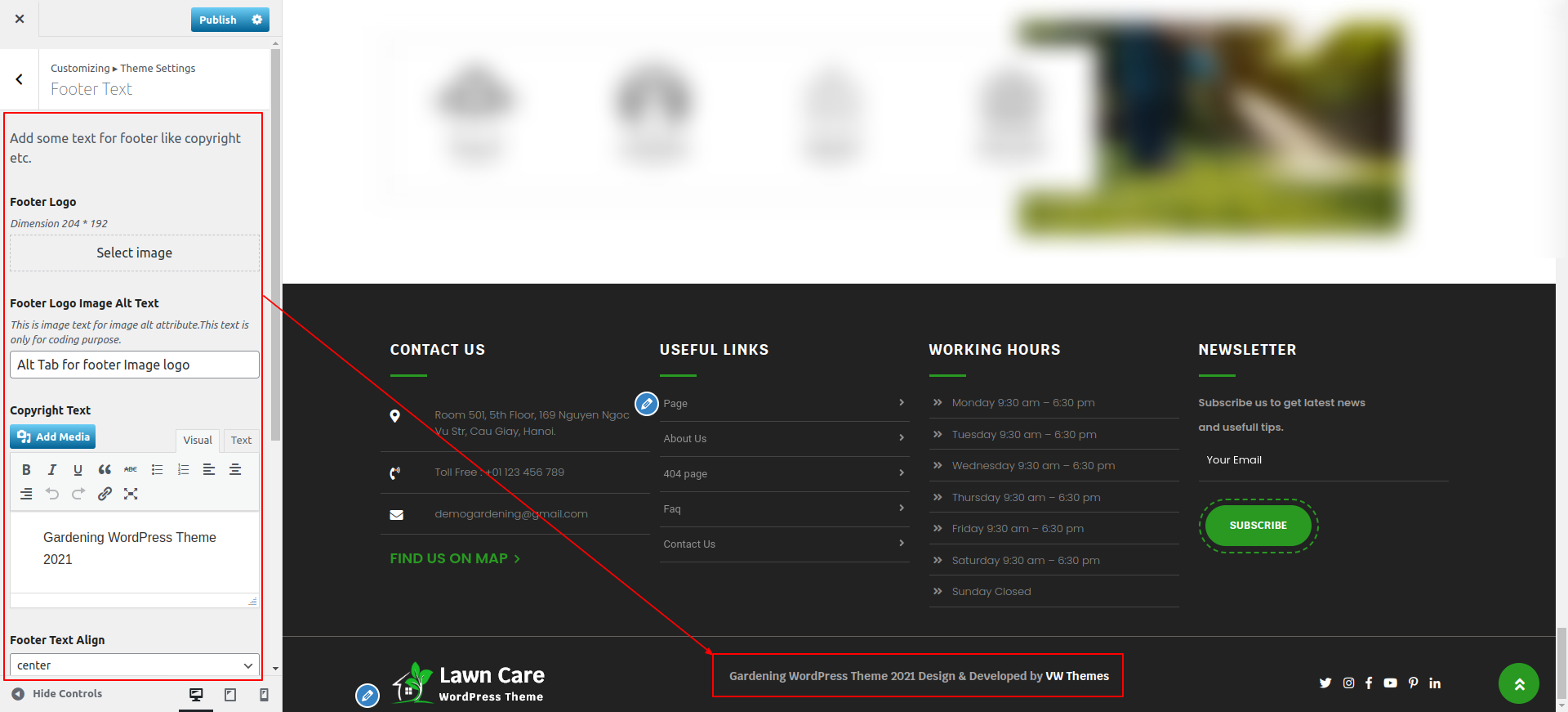 Go to Appearance >> Customize >> Theme Settings >> Footer Section