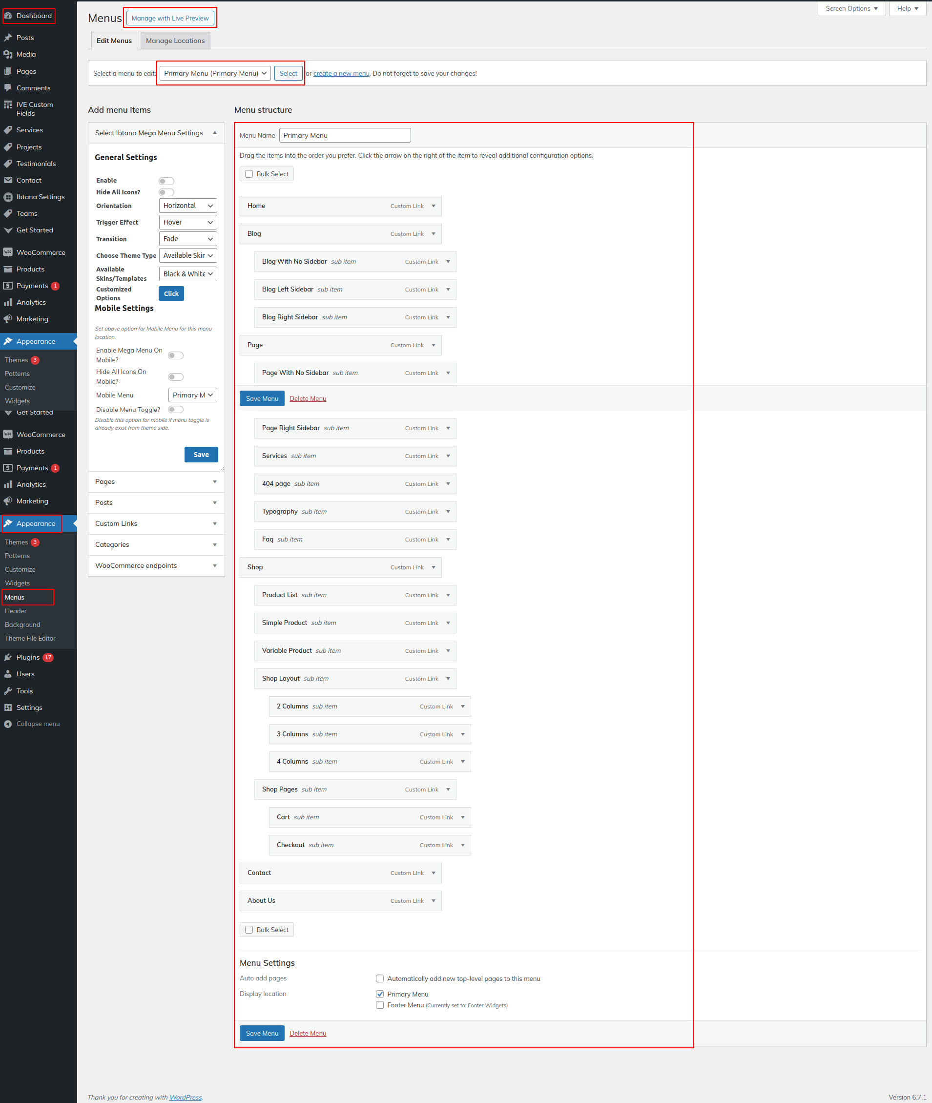 6.17 Setup Footer Menu Section