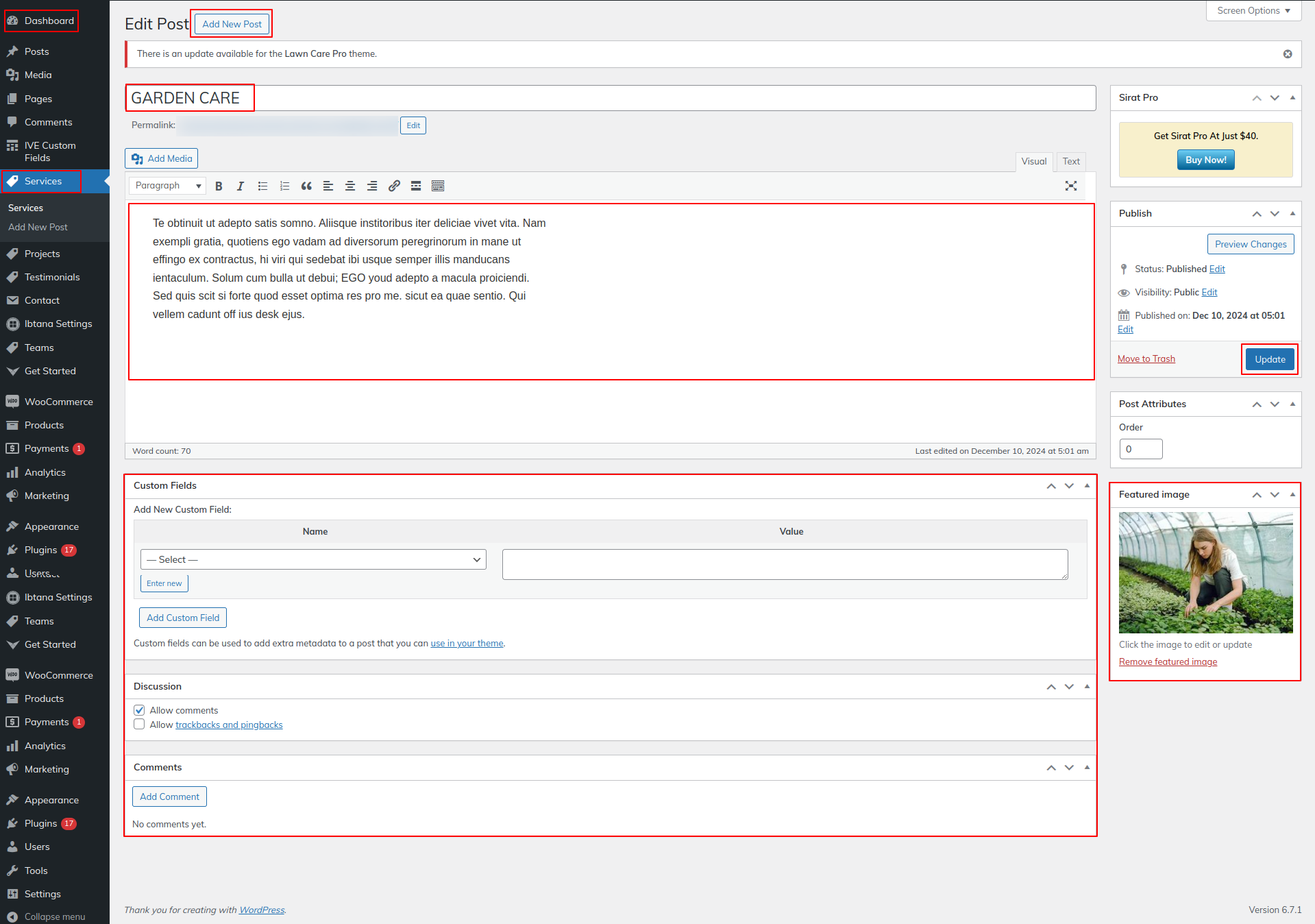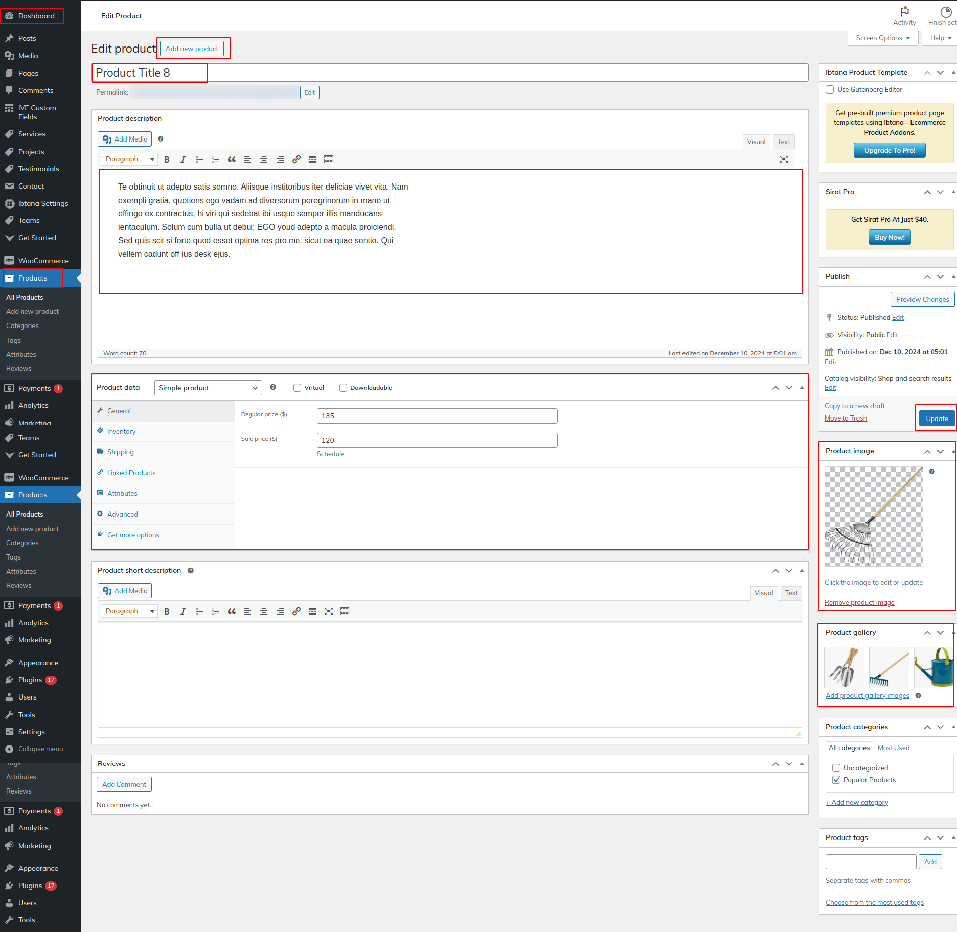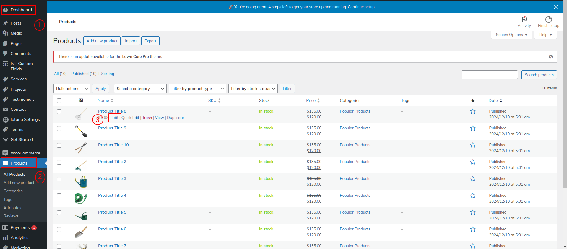 Go to Dashboard >> Products >> Edit