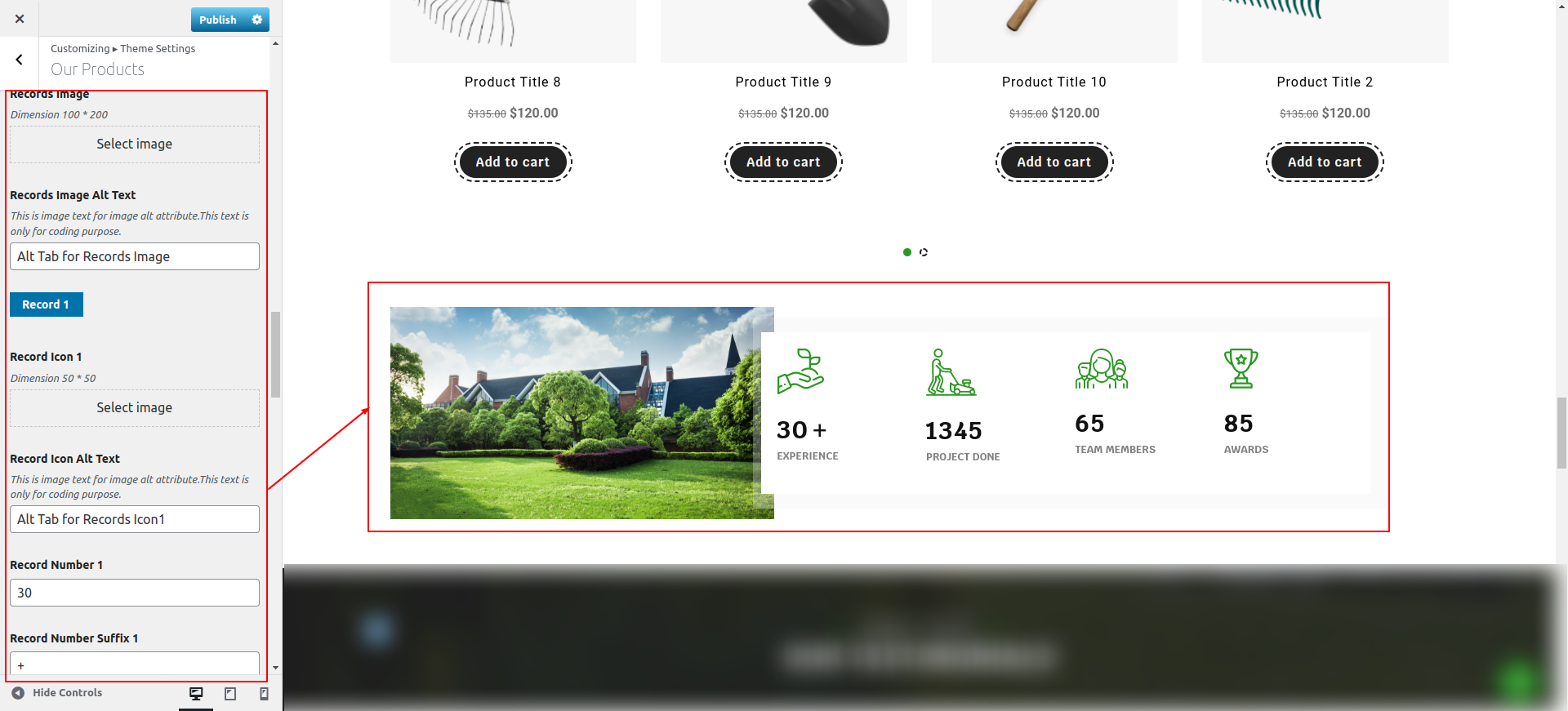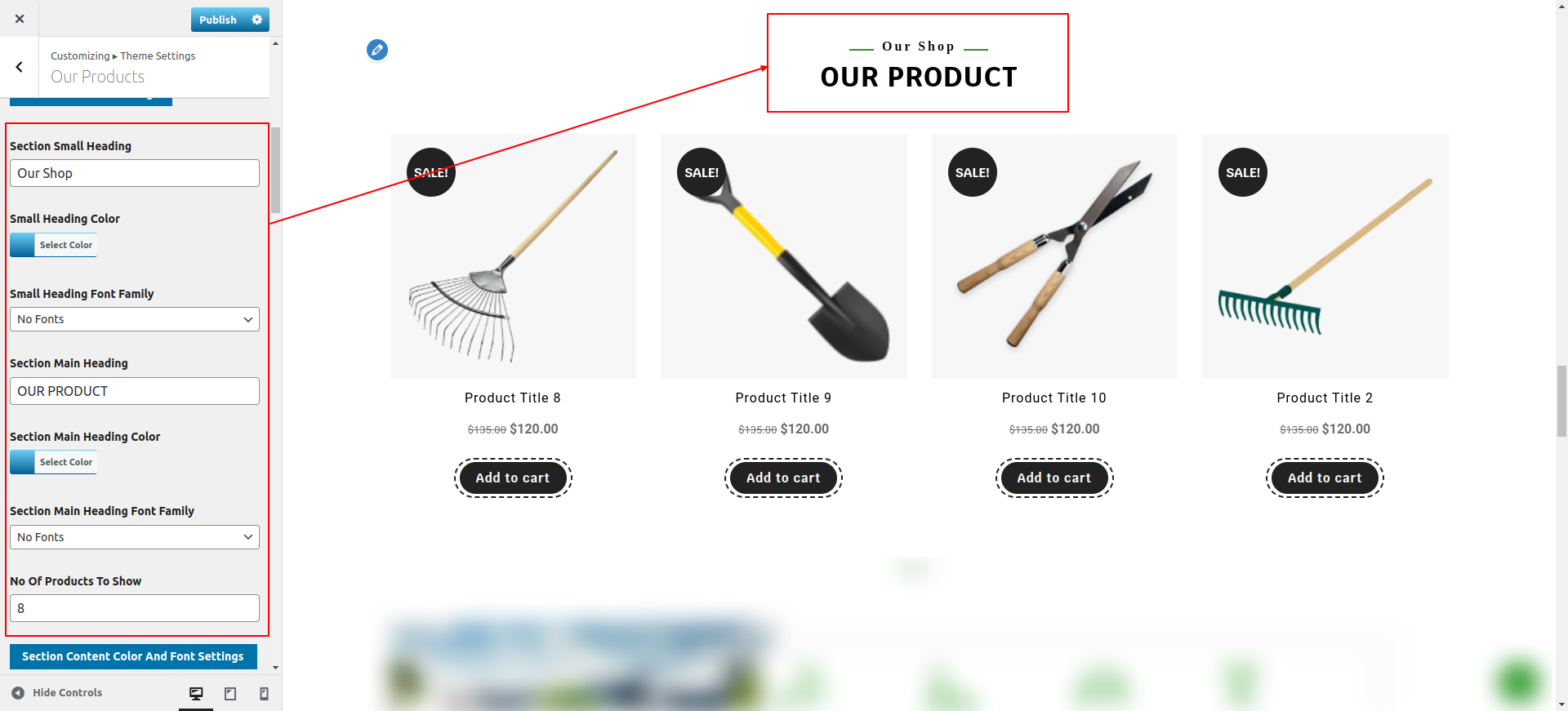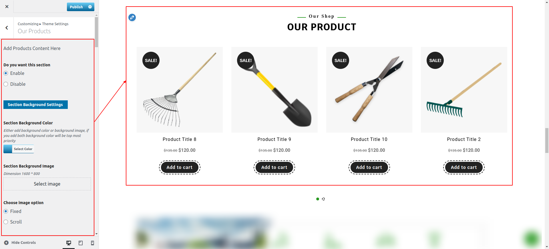 You can configure the Our Products Section in this way.