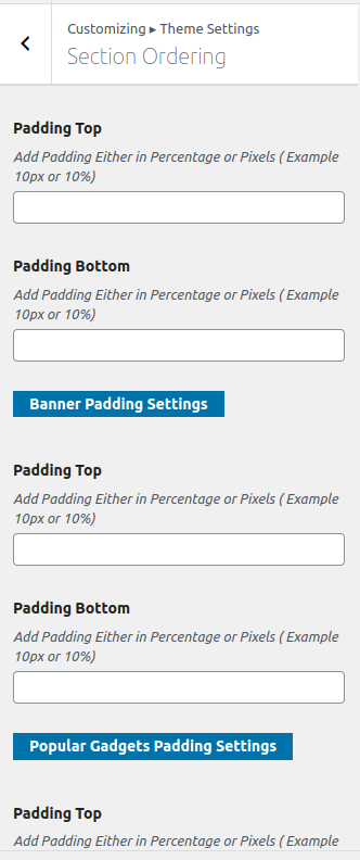 Padding Top Settings
