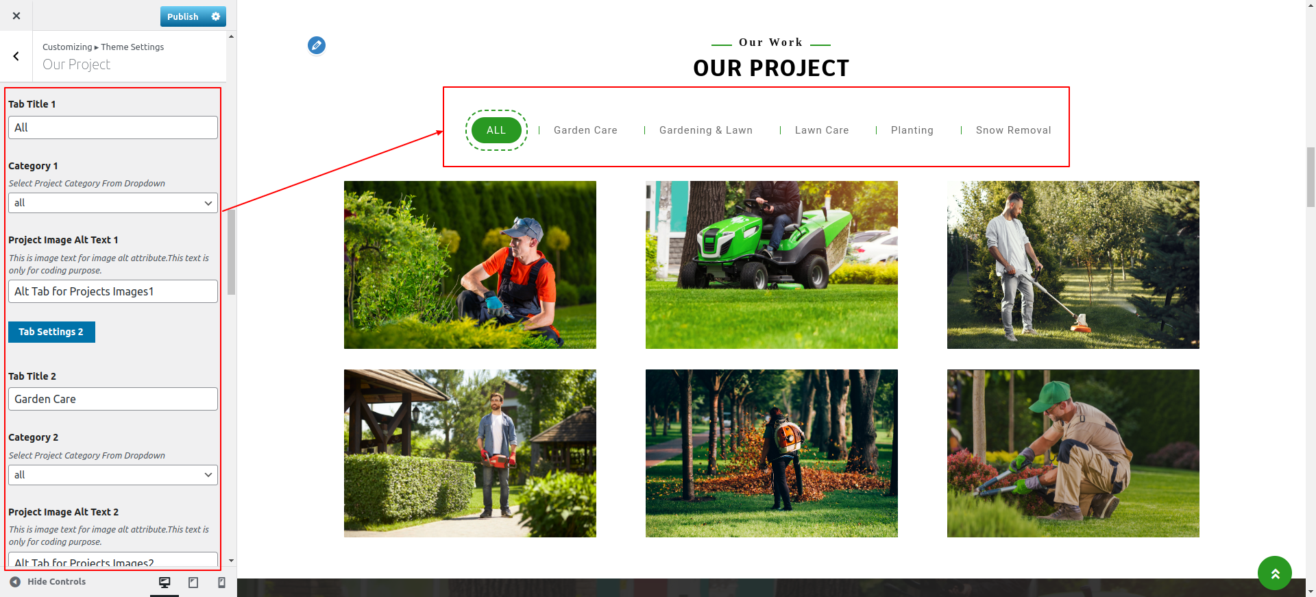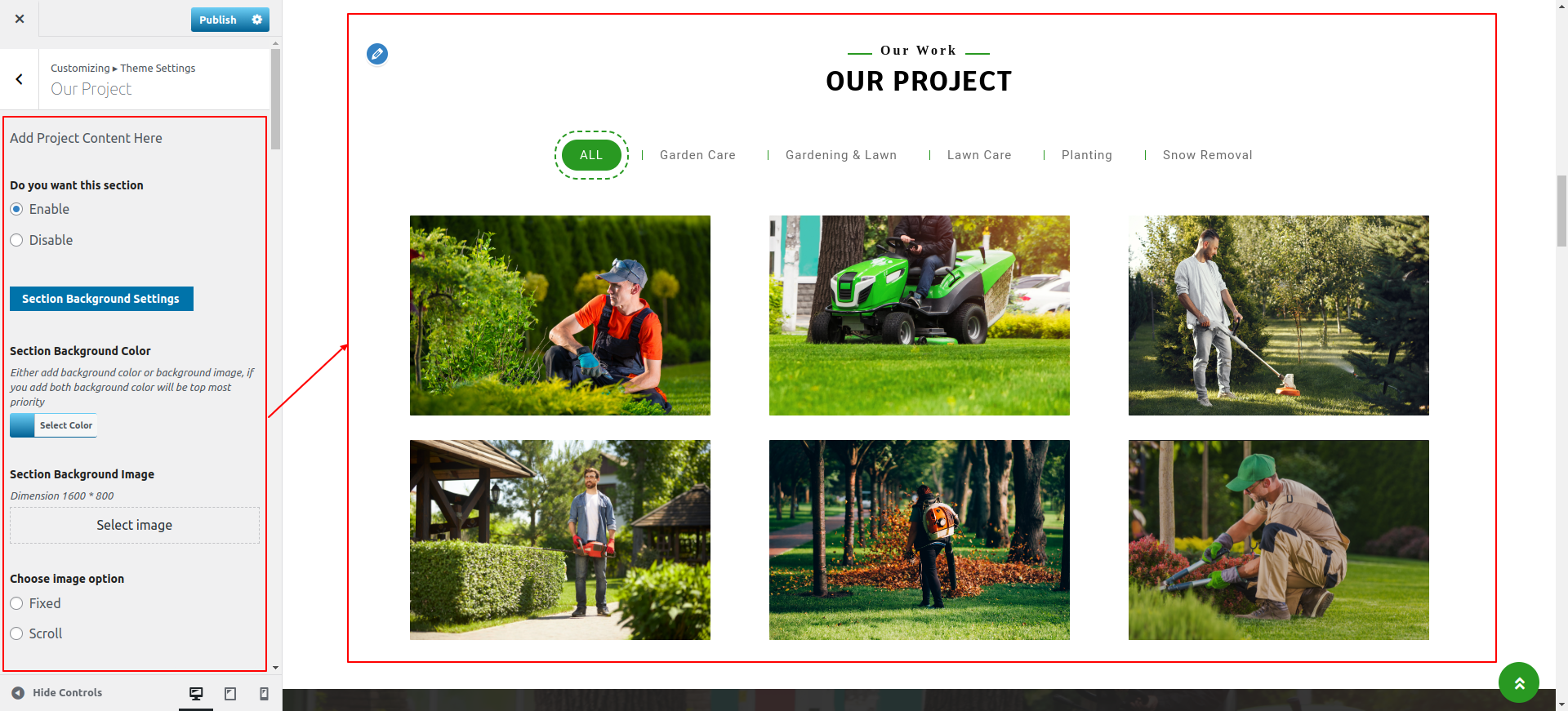 Go to Appearance >> Customize >> Theme Settings >>Our Project Section