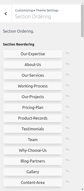 First Step Navigate to Dashboard >> Customize >> Theme Settings >> Section Ordering