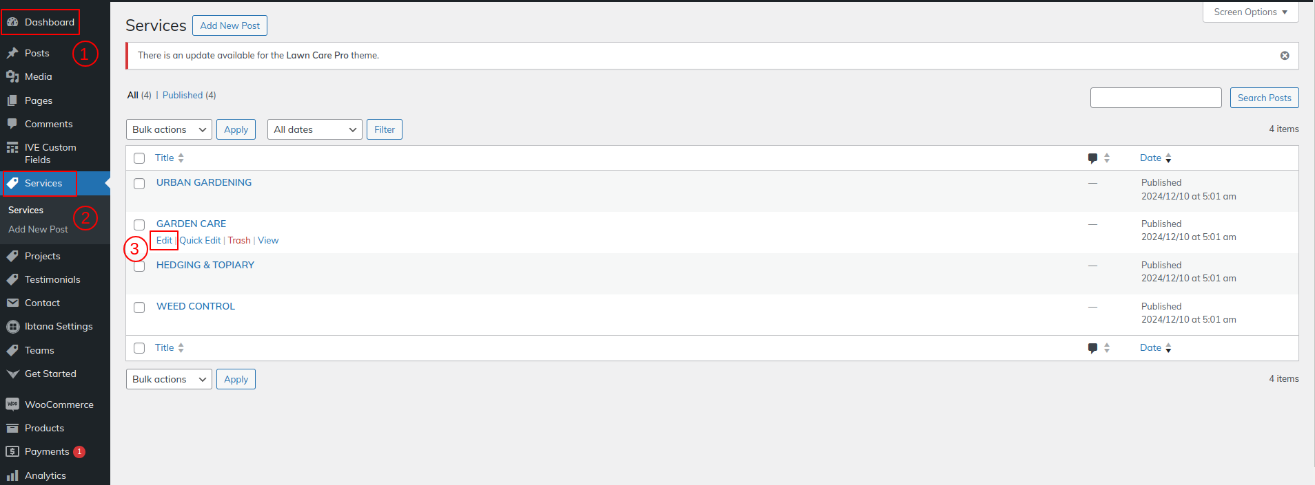 Go to Dashboard >> Service>> Edit