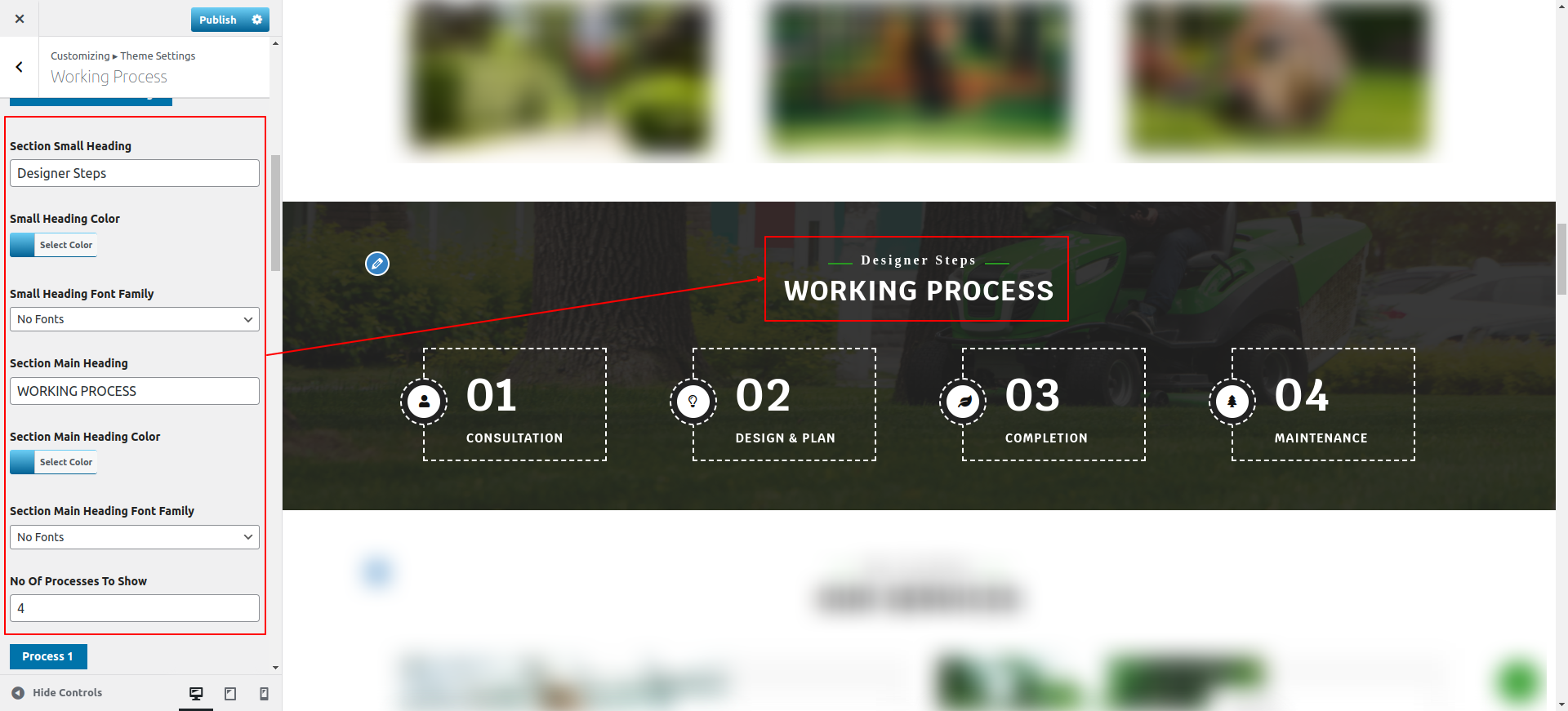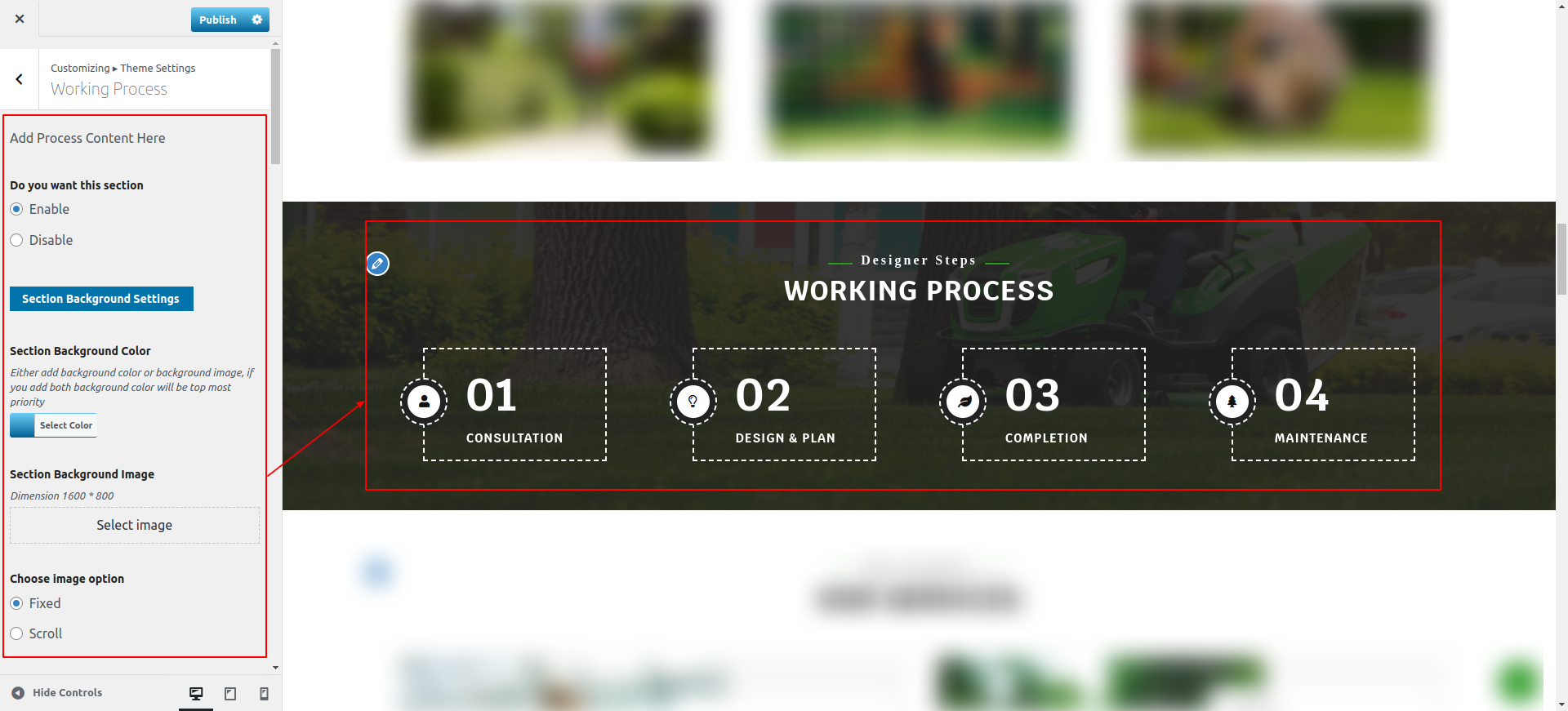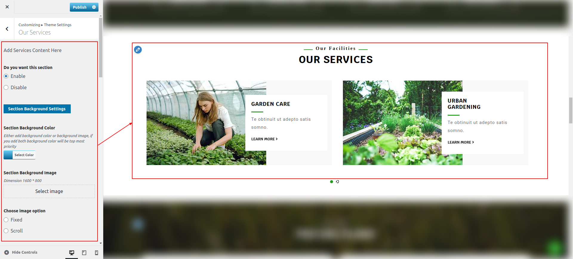 You can configure the Final Our Services Section in this way.