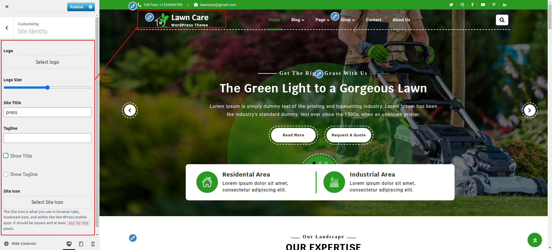 Go to Appearance >> Customize >> Site Identity .