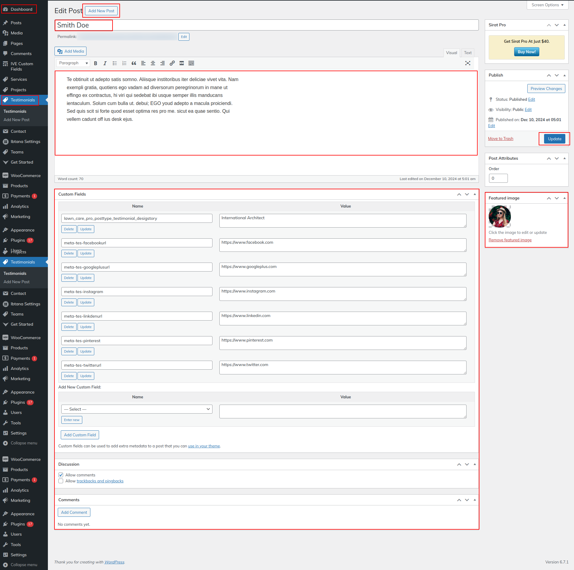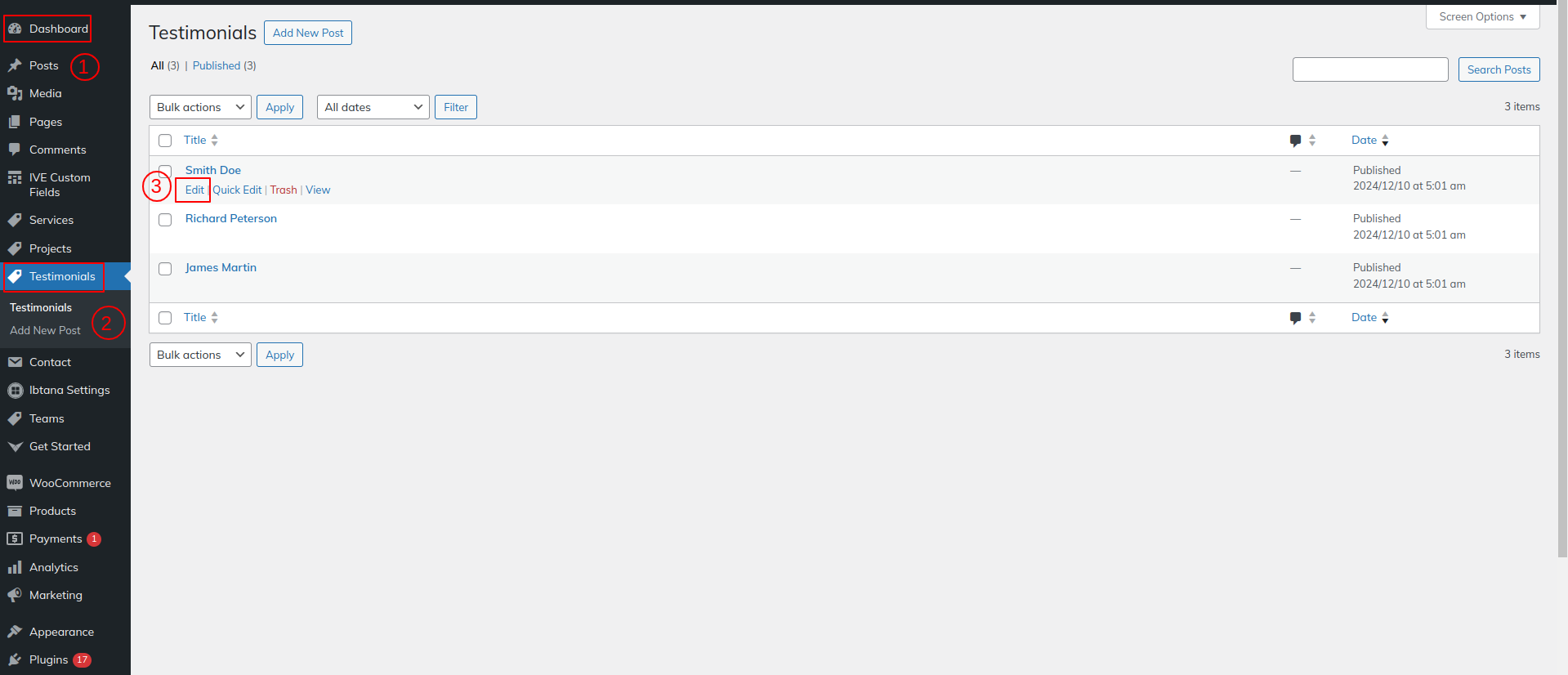 Go to Dashboard >> Testimonials >> Edit