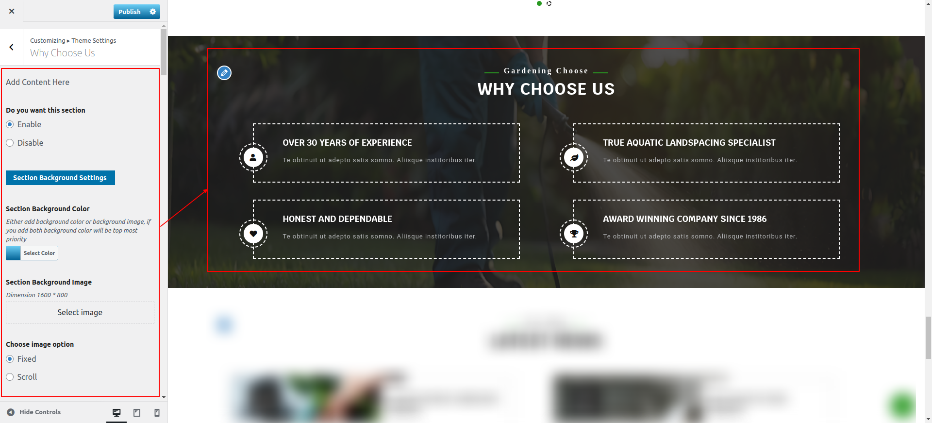 Observe these instructions to set up Why Choose Us Section.